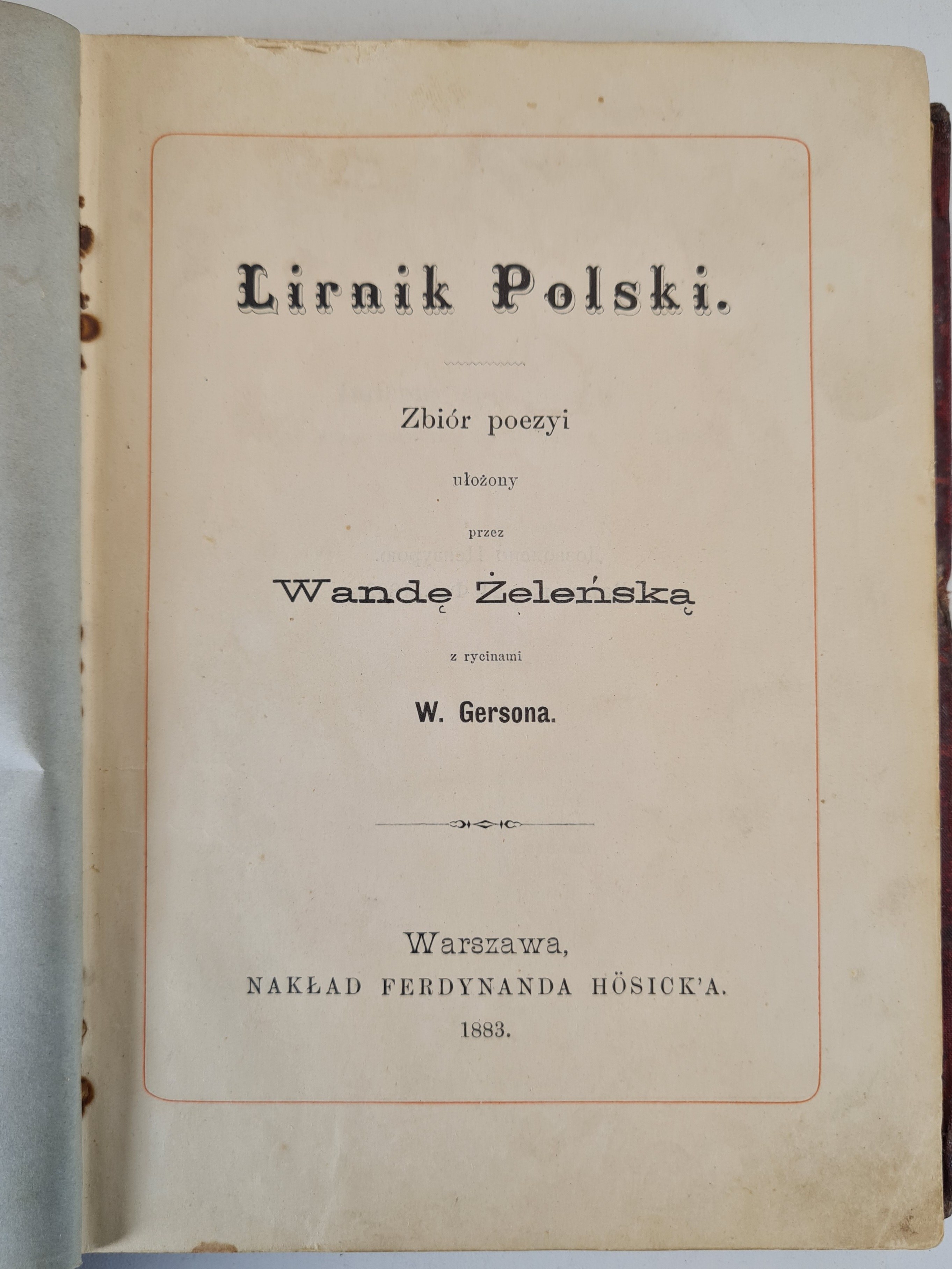 LIRNIK POLSKI. Zbiór poezyi ułożony przez Wandę Żeleńską.