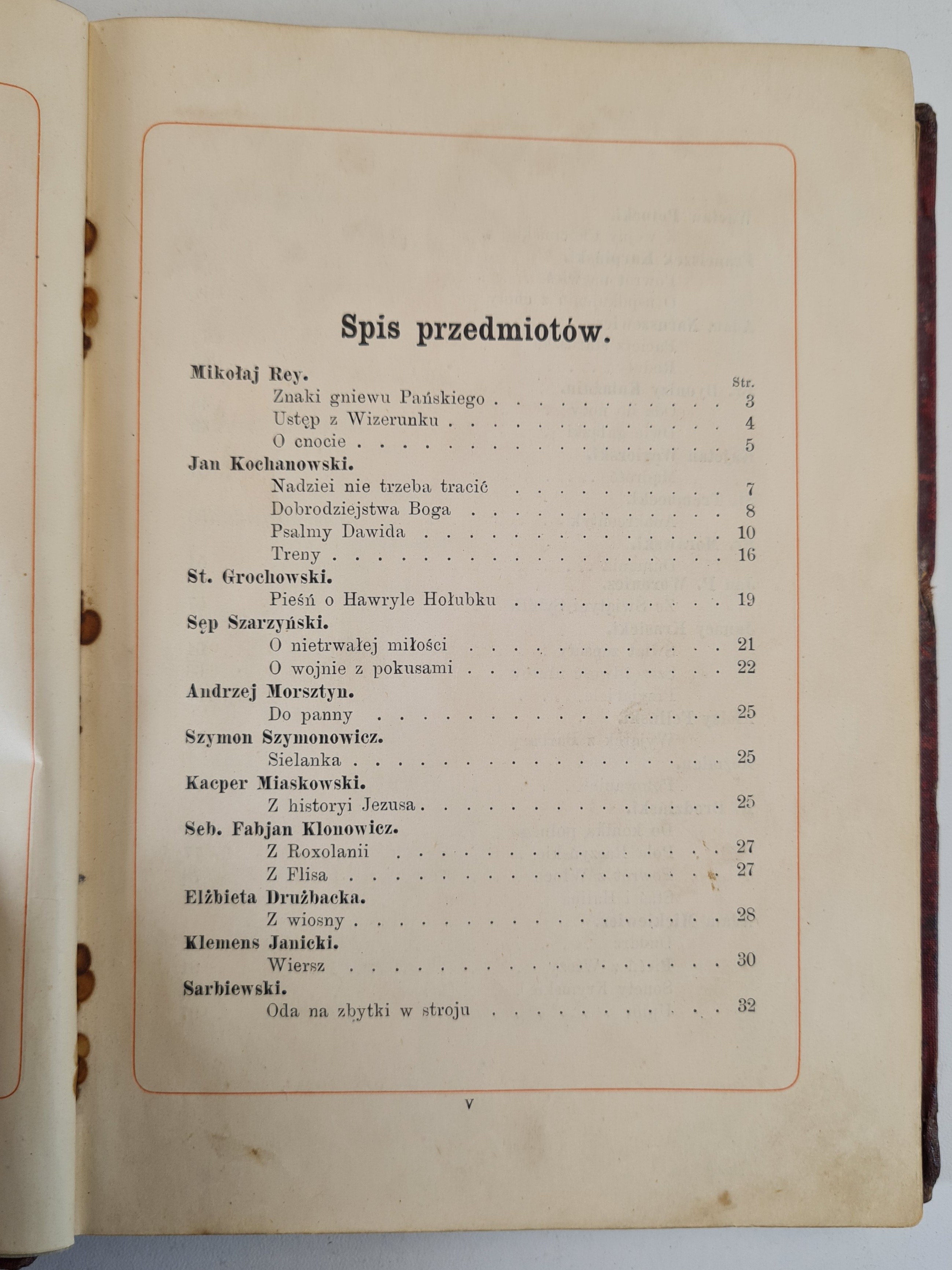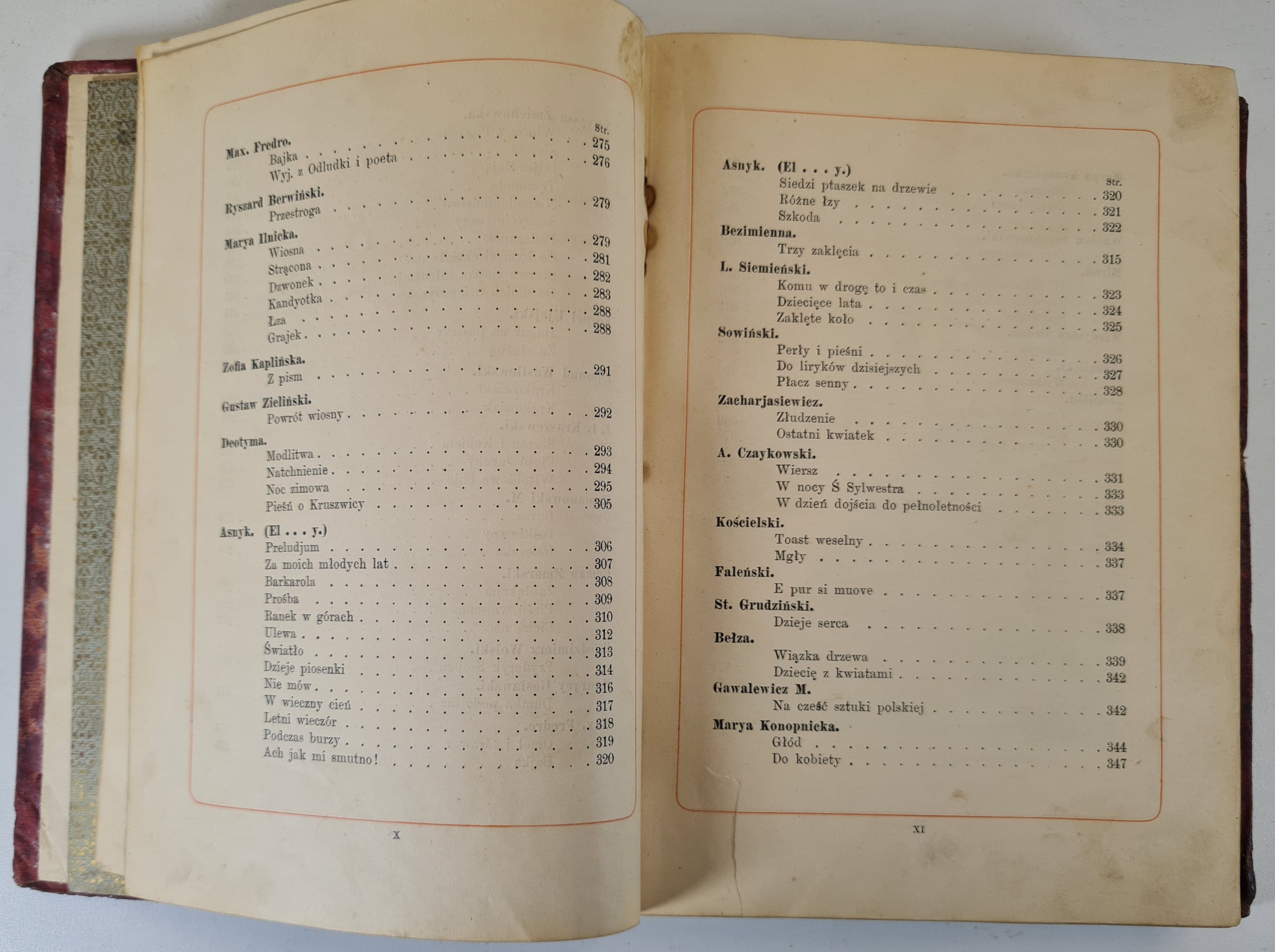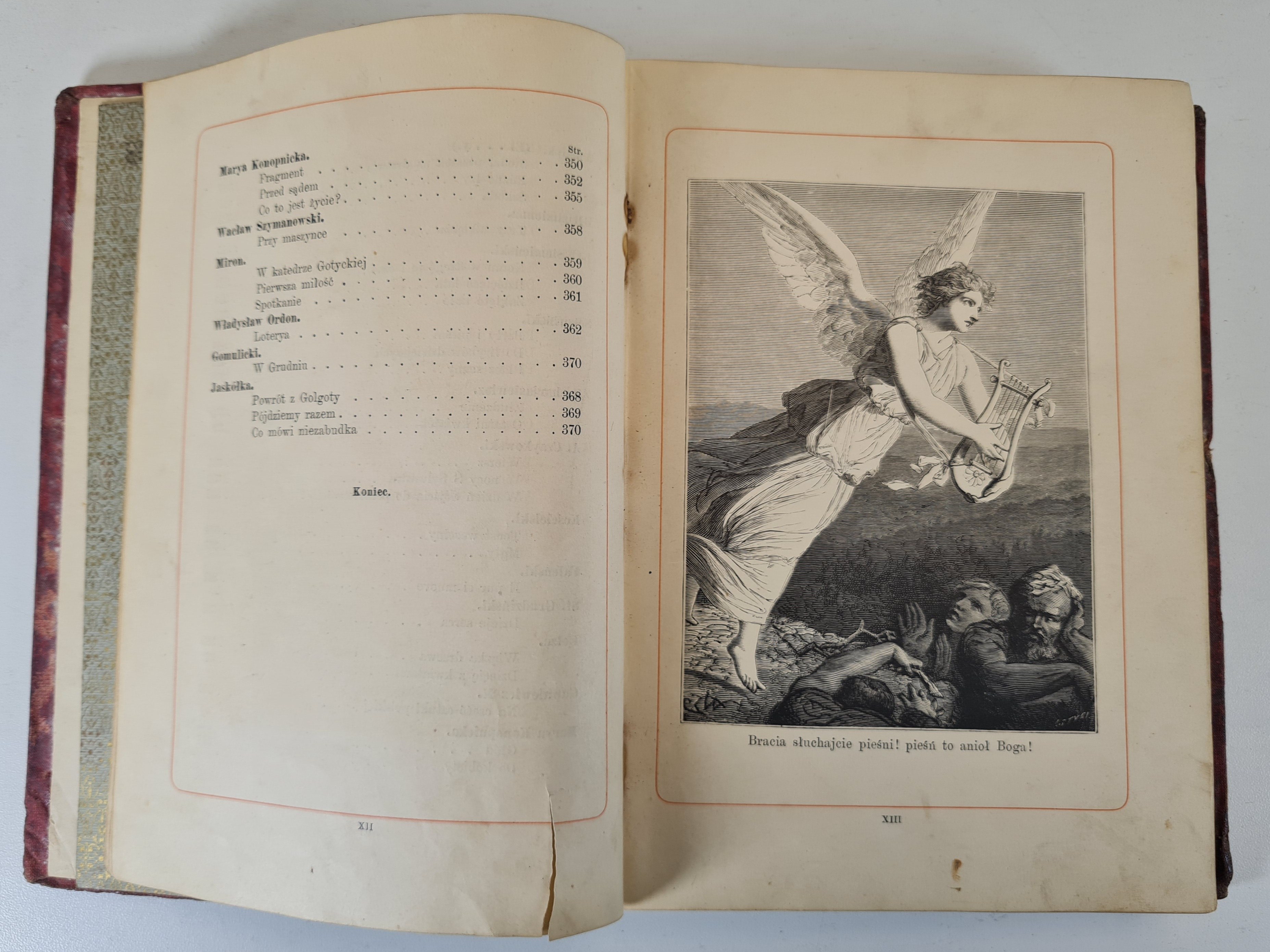 Nakładem Fryderyka Hösicka, Warszawa 1883. Ilustracje. Wym.20x15 cm; stron 372. Oprawa twarda, płócienna czerwona, bogato zdobiona złoceniami i czernieniami o tematyce florystycznej, złocone krawędzie kart. Brak ozdoby grzbietu. Zabrudzenia, otarcia, wytarcia, ubytki w oprawie. Zabrudzenie niektórych kart, zacieki.