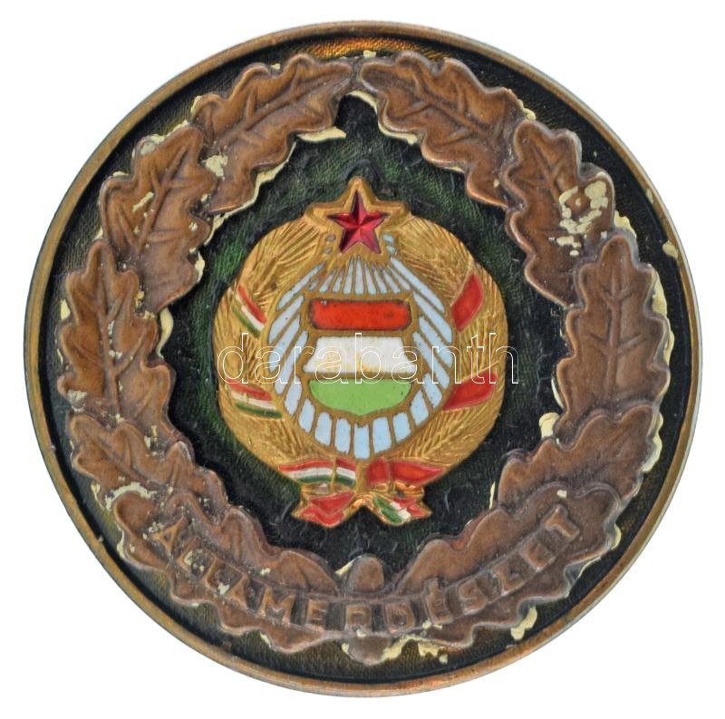 ~1970-1980. "Államerdészet" részben zománcozott bronz jelvény, csavaros hátlappal, hátoldalon "606" sorszámmal (40mm) T:XF hátoldalon forrasztásnyom / Hungary ~1970-1980. "Államerdészet" partially enamelled bronze badge, with screwback and "606" serial number (40mm) C:XF with soldering mark on backside
