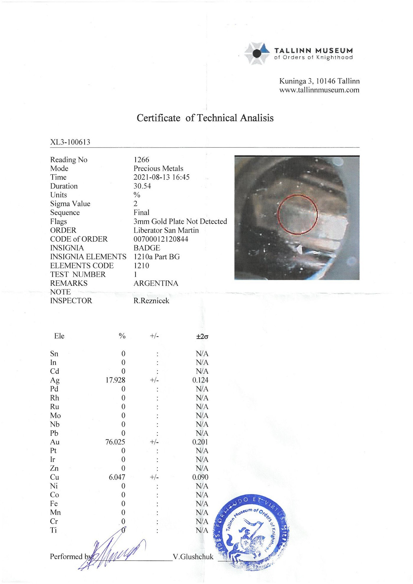 Badge 98,55 gr. Star 102,4. Gold AU 18K certificate.; Made of gold for high-ranking persons. Extremely rare.