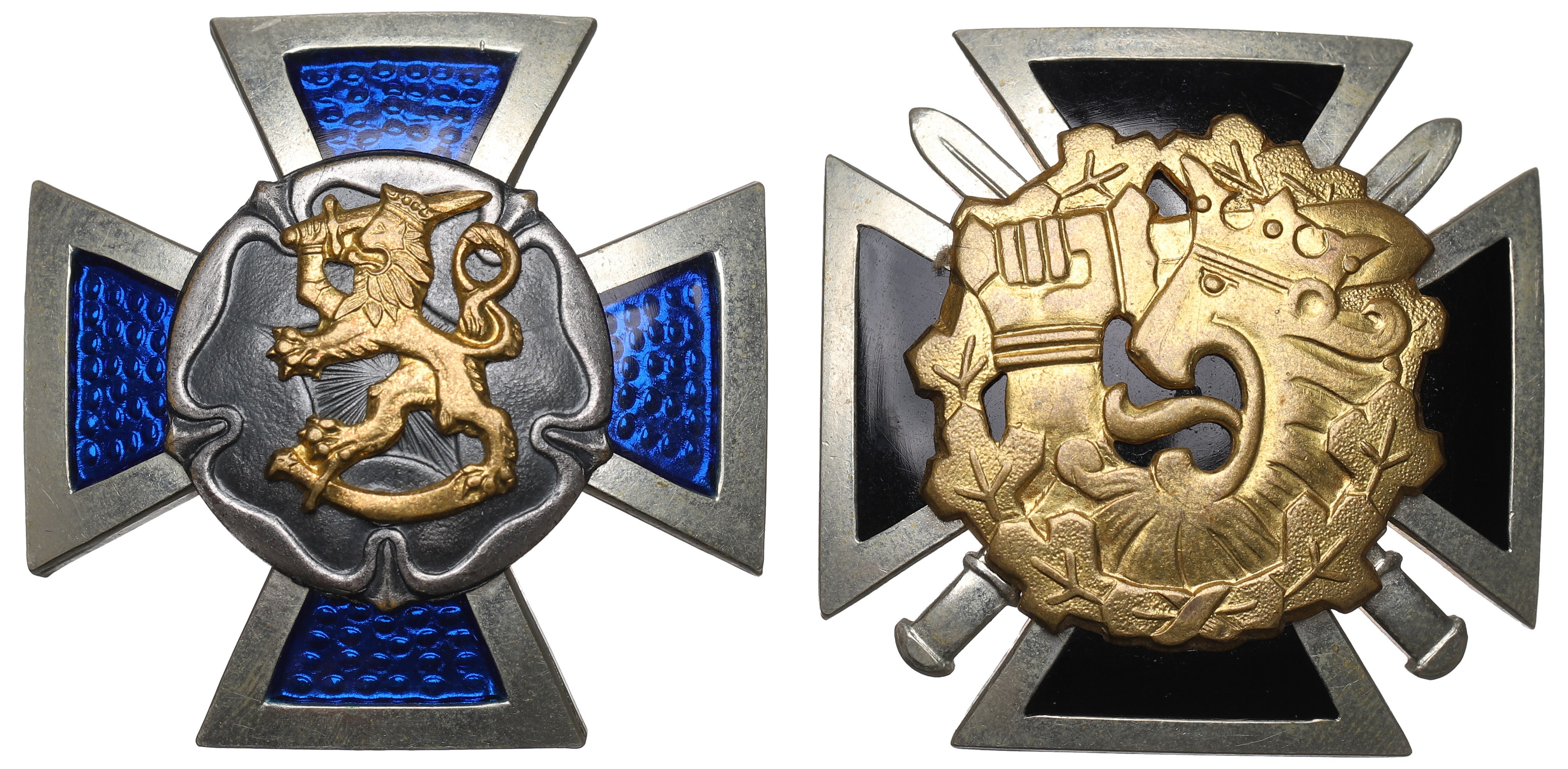 Bardzo ładnie zachowane odznaki oficera rezerwy i ukończenia szkoły oficerskiej.