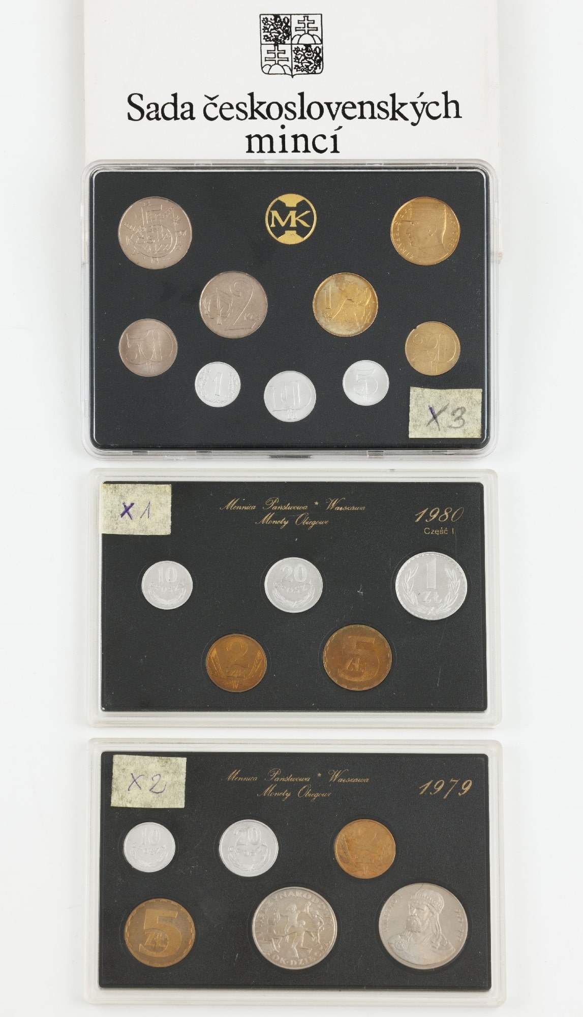 10 koron, 5 koron, 2 korony, korona, 50 halerzy, 20 halerzy, 10 halerzy, 5 halerzy, 1 halerz, żeton z godłem, pudełko
