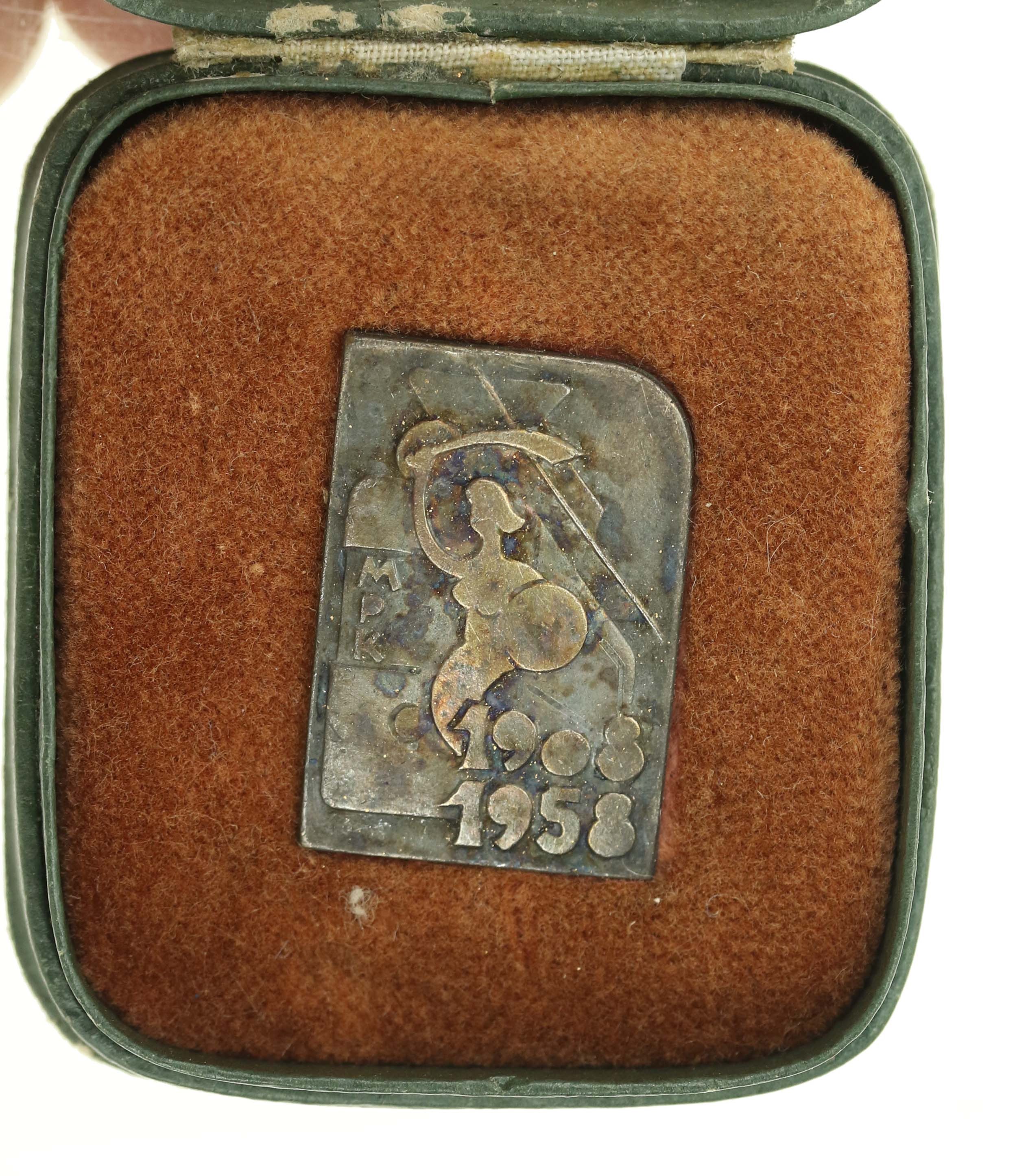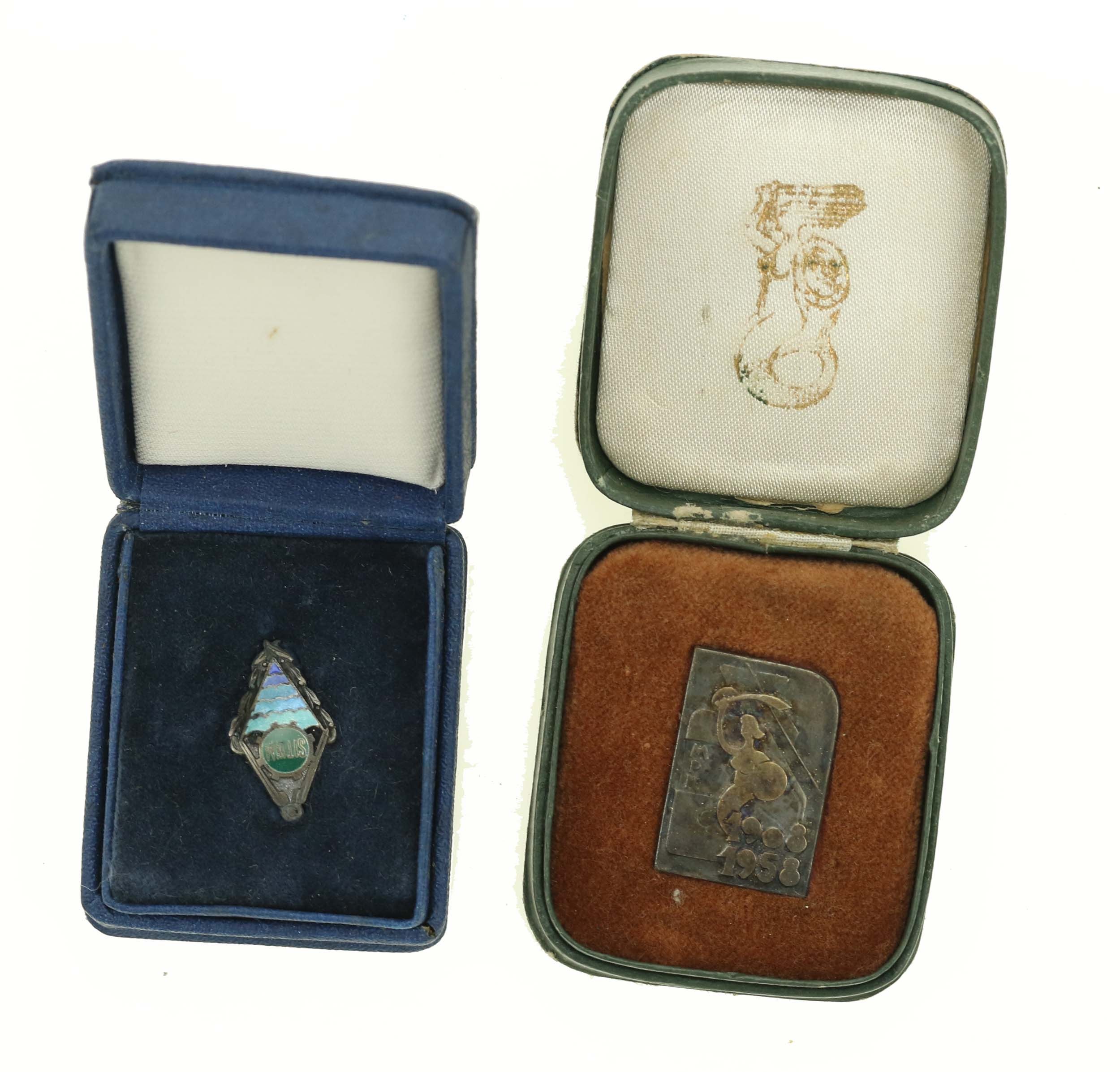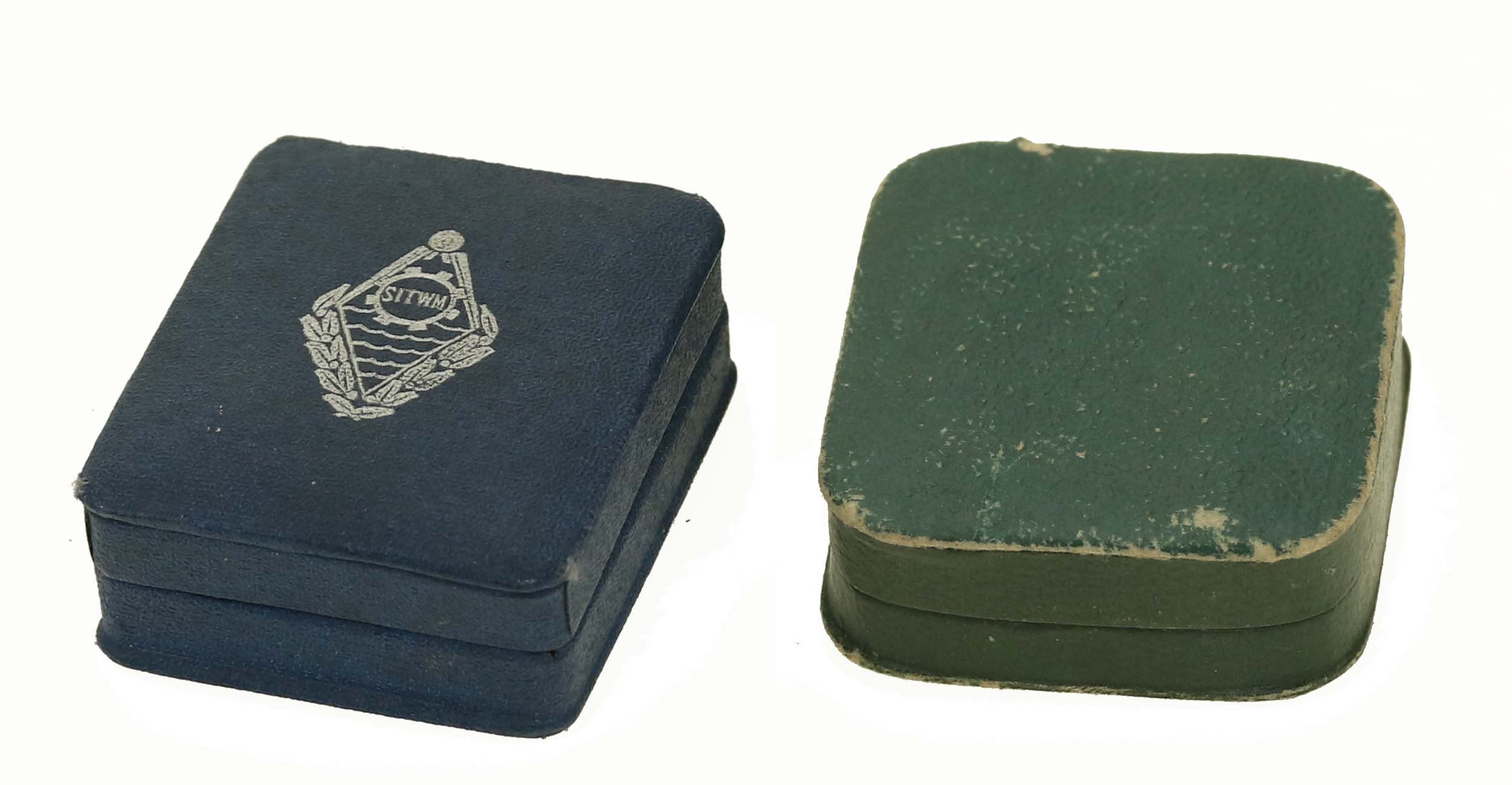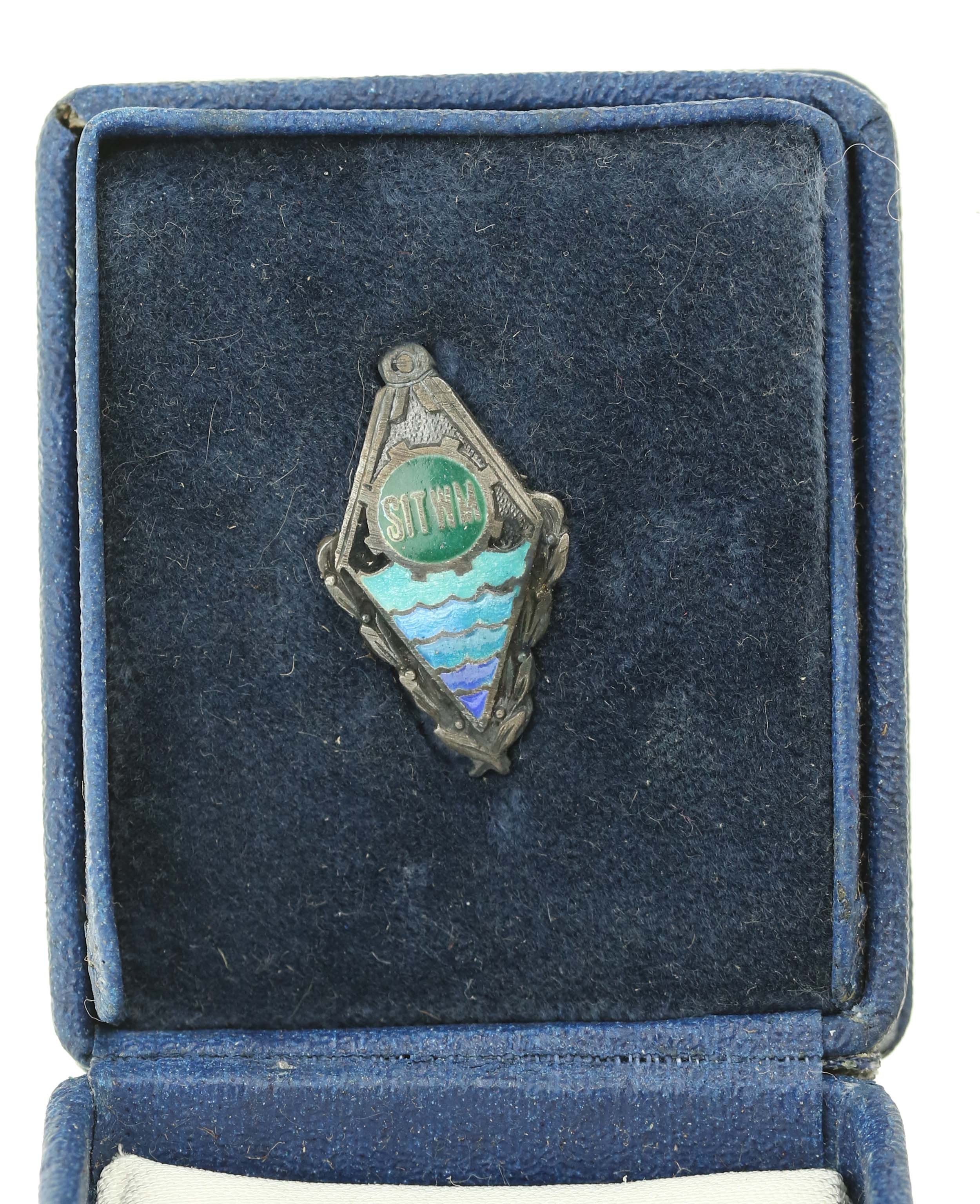 PRL, zestaw odznak warszawskich. Razem 2 szt. Zestaw 2 odznak w oryginalnych pudełkach. 1) Odznaka Stowarzyszenie Inżynierów i Techników Wodnych i Melioracyjnych. Emaliowana. Wym. odznaki 23 x 13 mm, wym. pudełka 55 x 45 x 23 mm. 2) Odznaka MPK Warszawa. Wym. odznaki 28 x 19 mm, wym. pudełka 56 x 49 x 18 mm. Stan zachowania odznaki bardzo dobry.