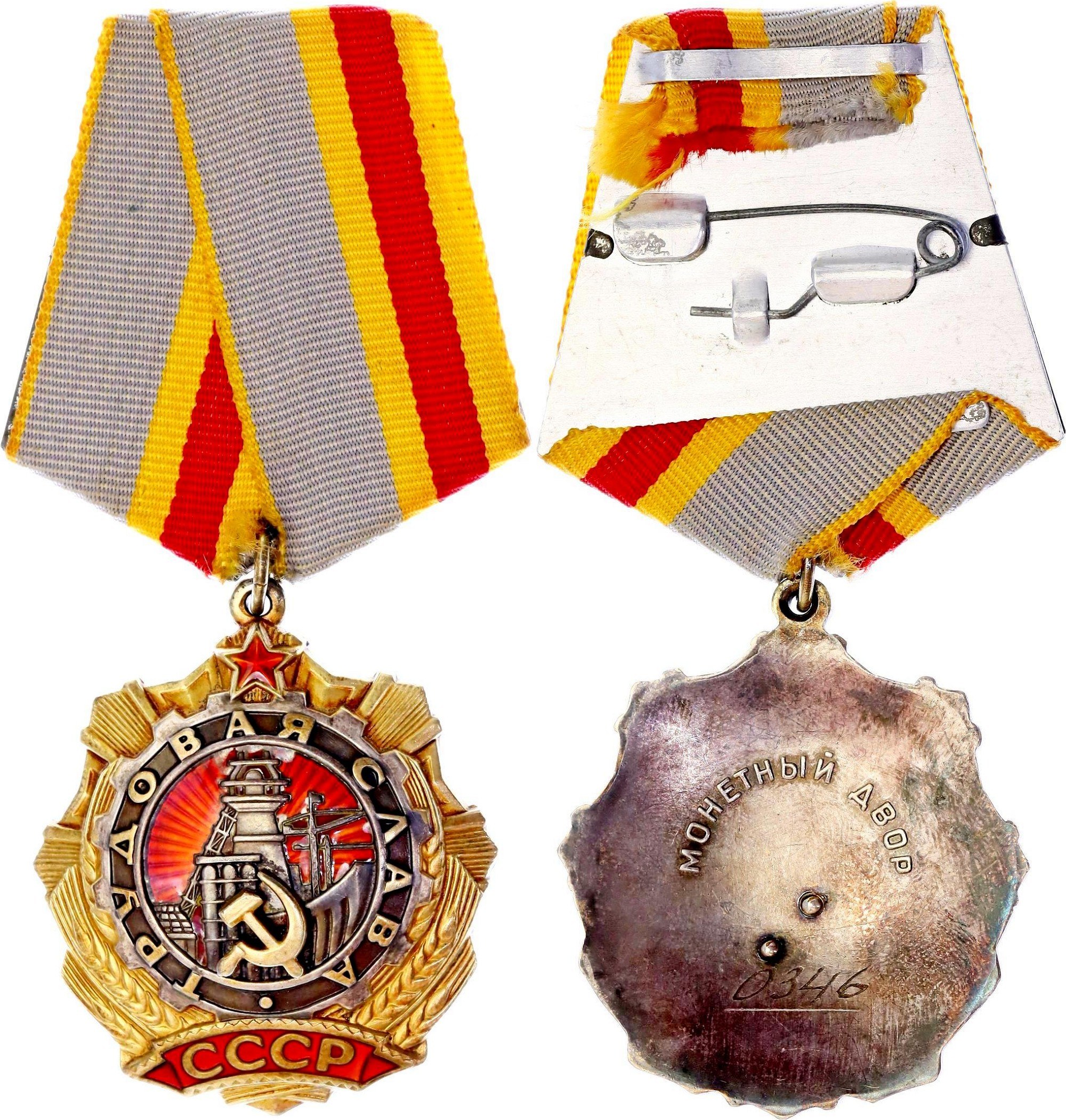 Boev# 1TC.1.; Silver 47x41 mm.; Enameled; with original ribbon; with number # 0346; original name: Орден трудовой славы; Condition-I