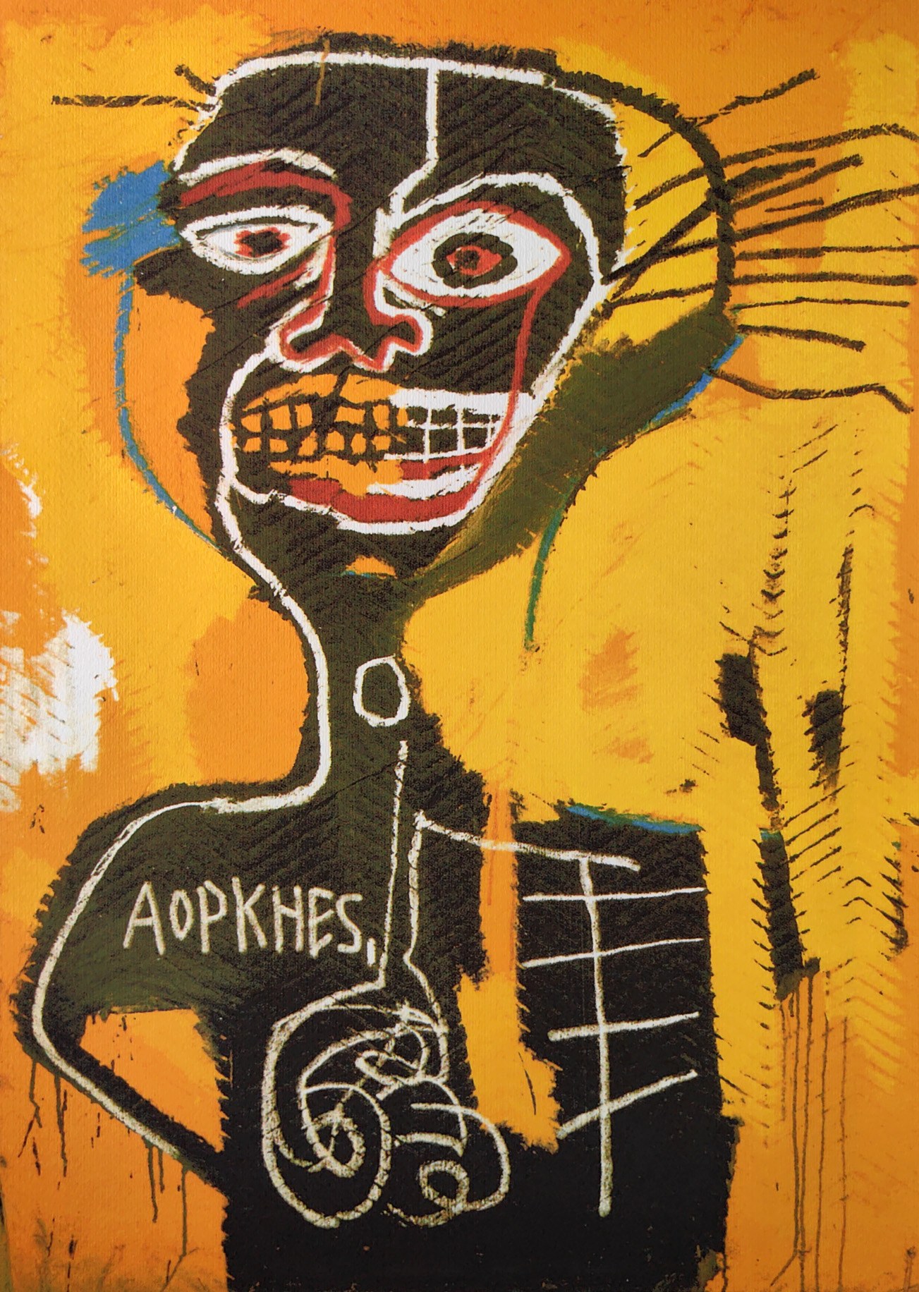 Napis ołówkiem l.d.: 175/300, p.d.: faksymile „Jean Michel Basquiat”.