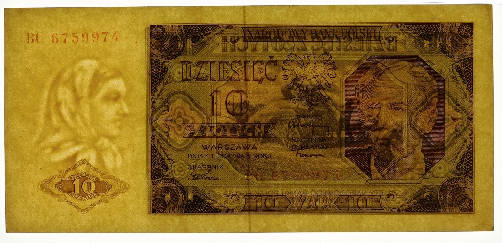 Banknot 10 złotych 1948, serii BC