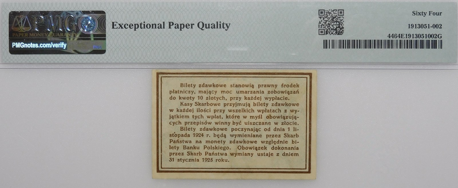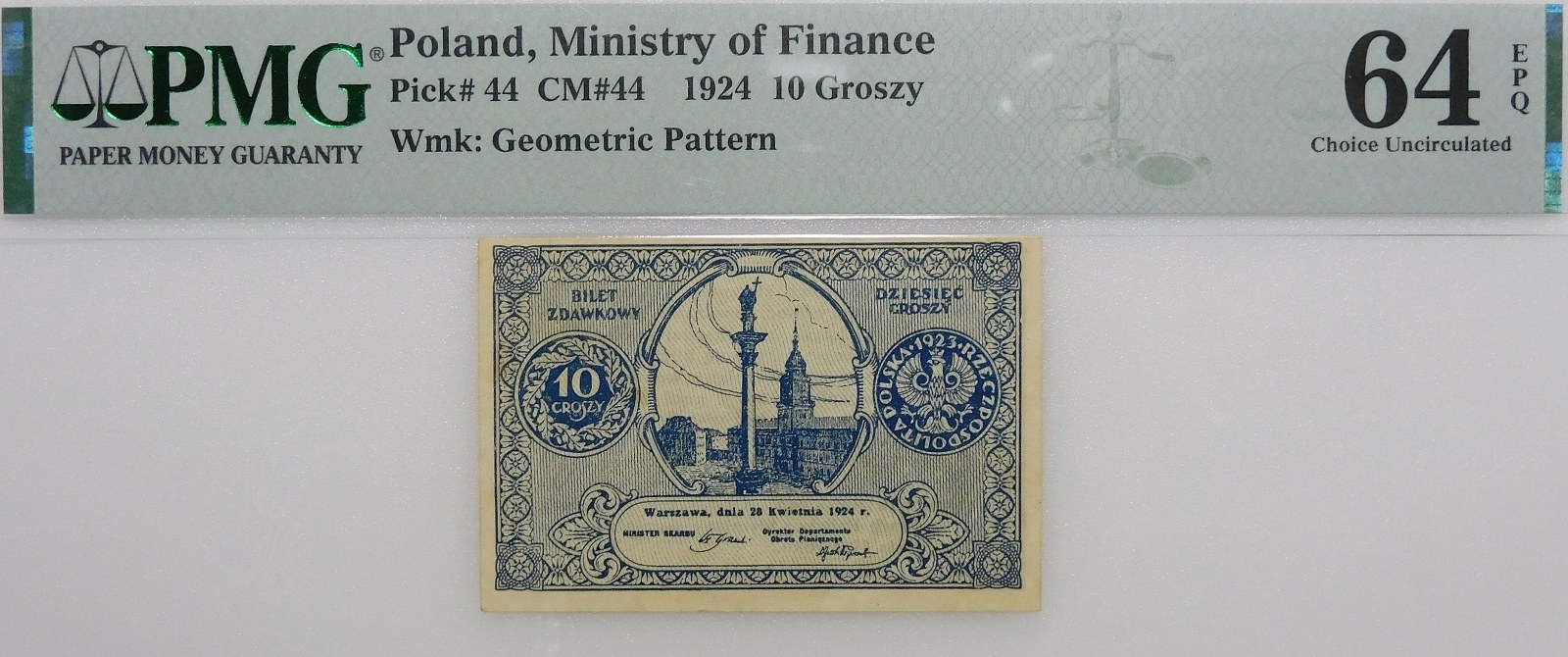Ładny egzemplarz, potwierdzony wysoką notą gradingową PMG, z adnotacją EPQ świadczącą o wyjątkowej jakości papieru.