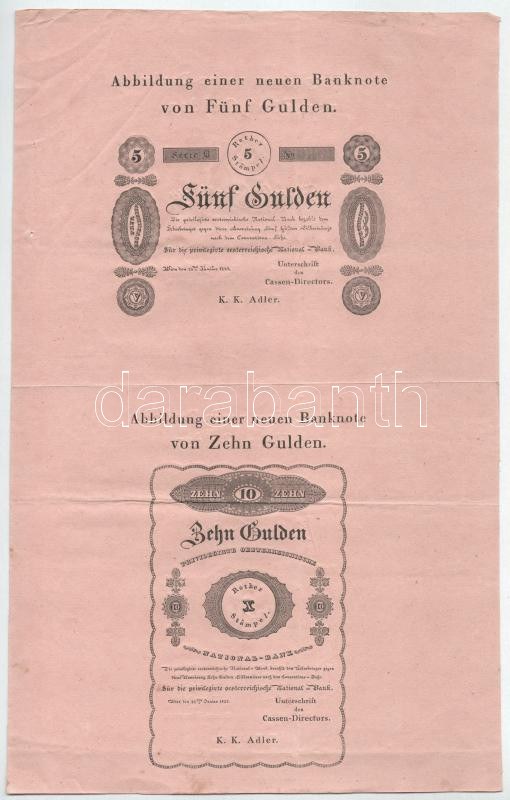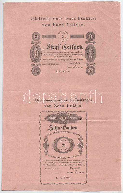 1825. 5G "Privilegirte Oesterreichische National-Bank" formulare + 10G "Privilegirte Oesterreichische National-Bank" formulare T:F szép papír, két helyen tűnyom / Hungary 1825. 5 Gulden "Privilegirte Oesterreichische National-Bank" formulare + 10 Gulden "Privilegirte Oesterreichische National-Bank" formulare C:F fine paper, needle marks at two spots Adamo G62M