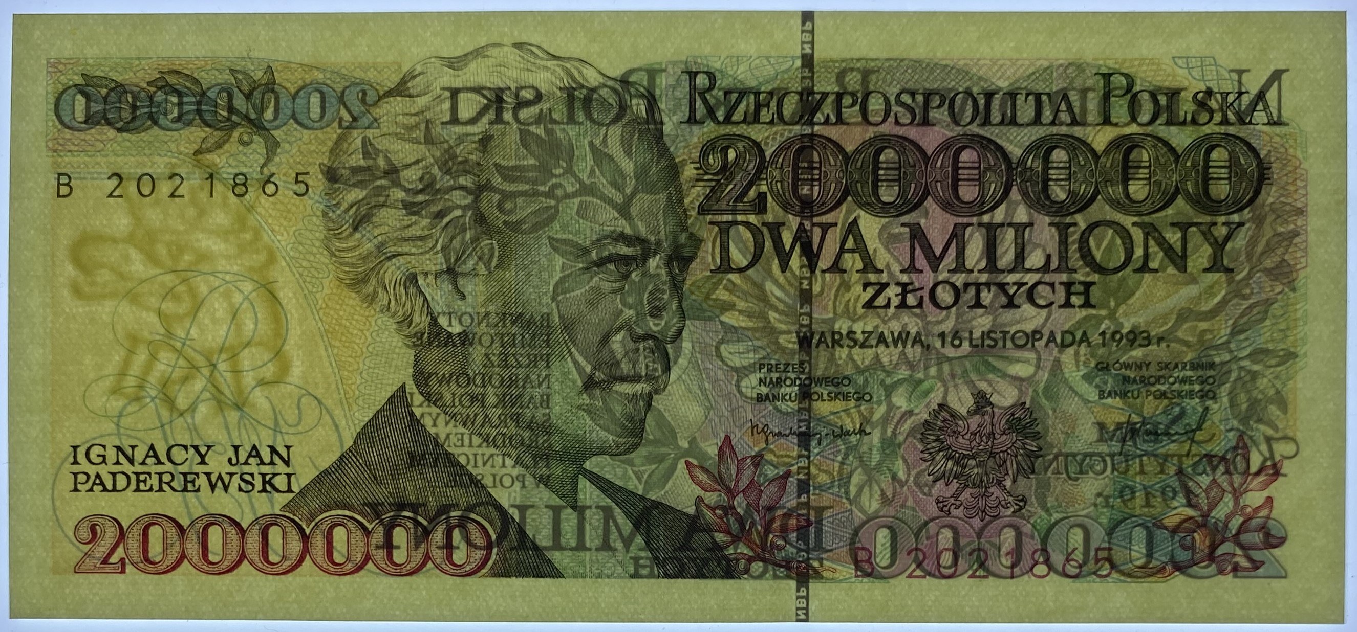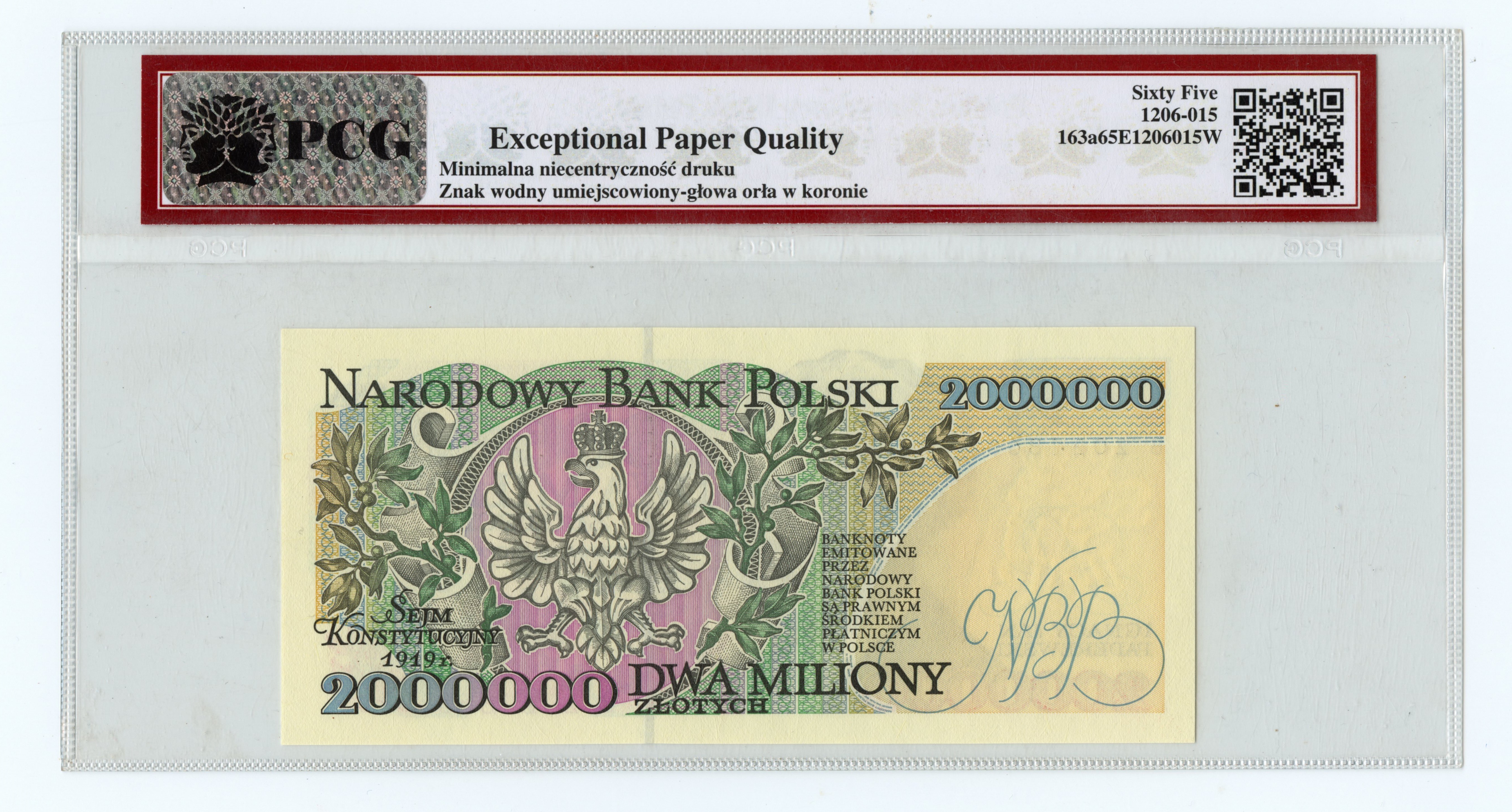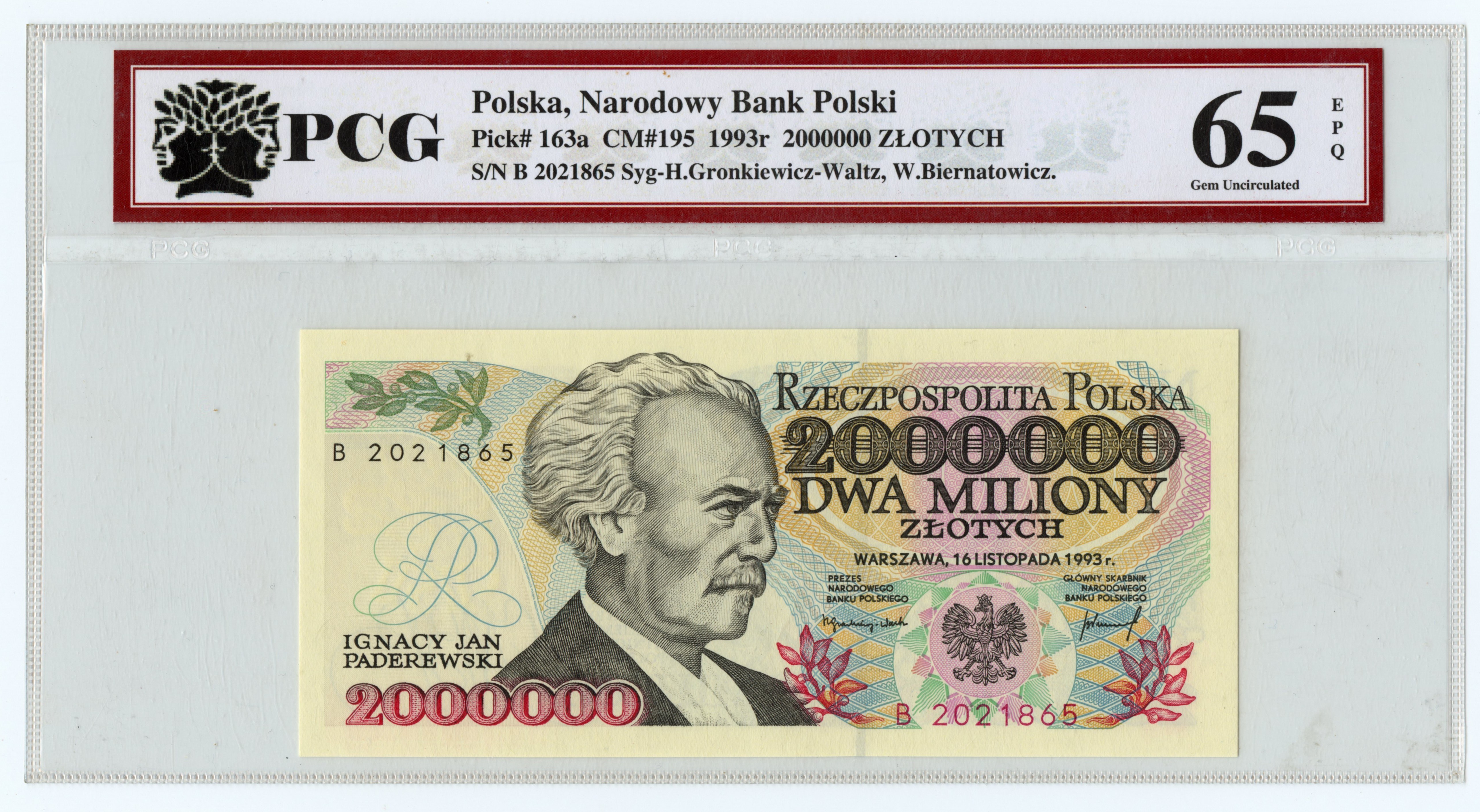 2.000.000 złotych 1993 - seria B 2021865 - PCG 65 EPQ