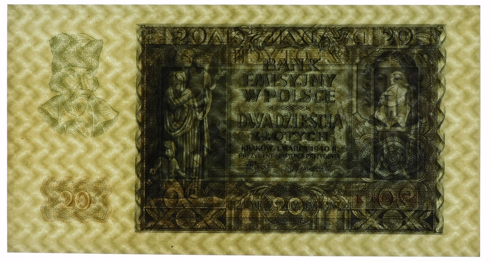 Banknot 20 złotych 1940, serii K .