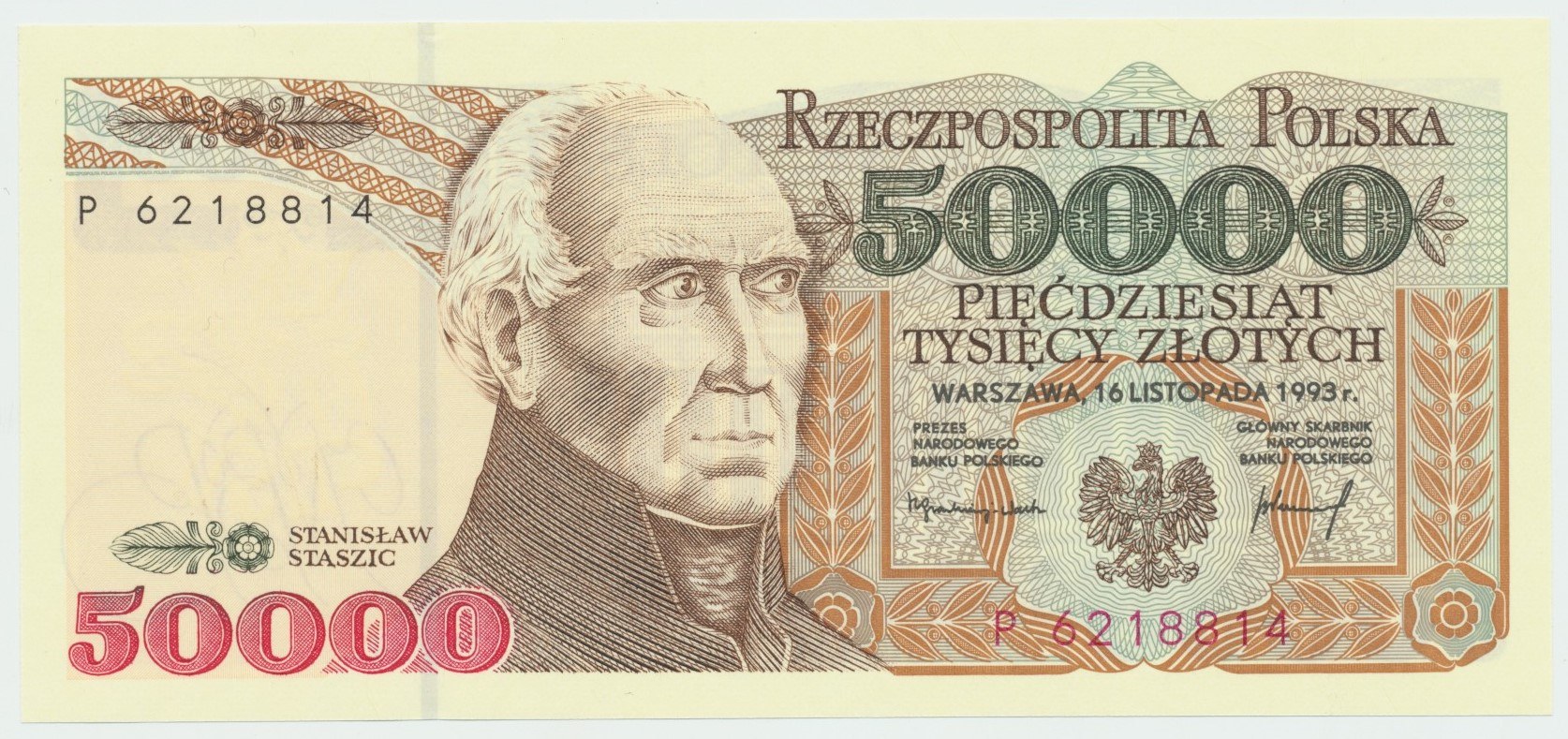 Banknot autorstwa Andrzeja Heidricha, znak wodny - w polu niezadrukowanym głowa orła w koronie, pod nią litery RP.