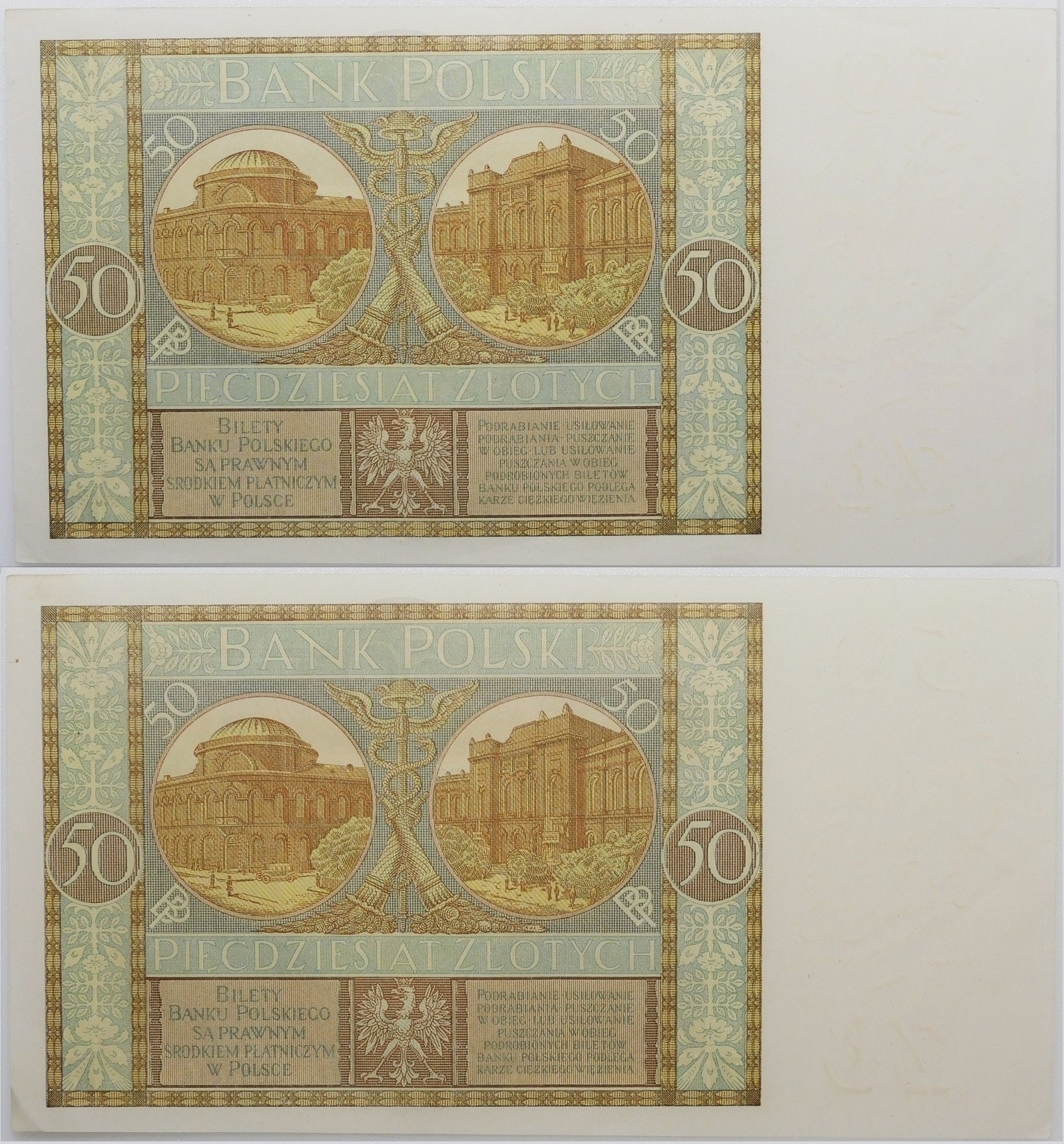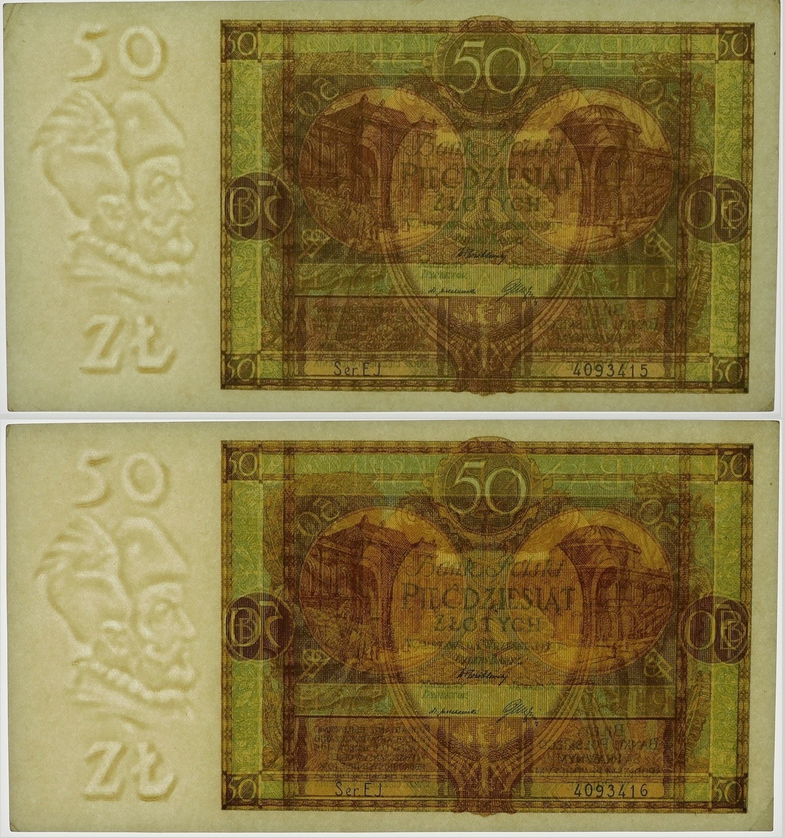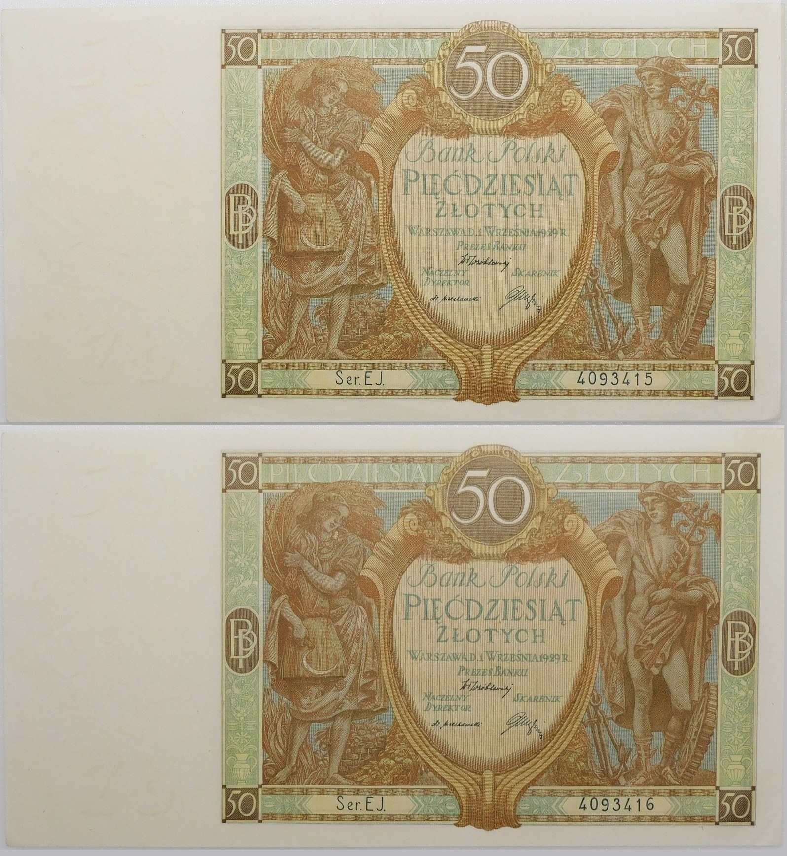 Banknoty 2x 50 złotych 1929 , serii EJ. - para banknotów o kolejnych numerach.