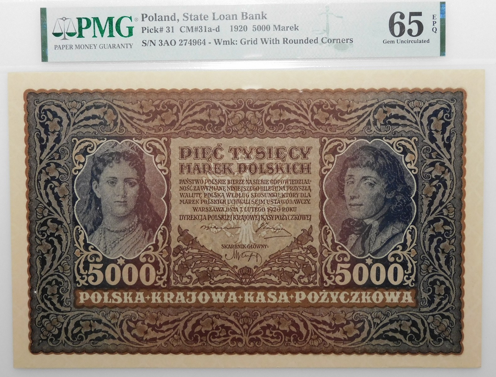 Atrakcyjny egzemplarz, potwierdzony wysoką notą gradingową PMG, z adnotacja EPQ świadcząca o wyjątkowej jakości papieru.