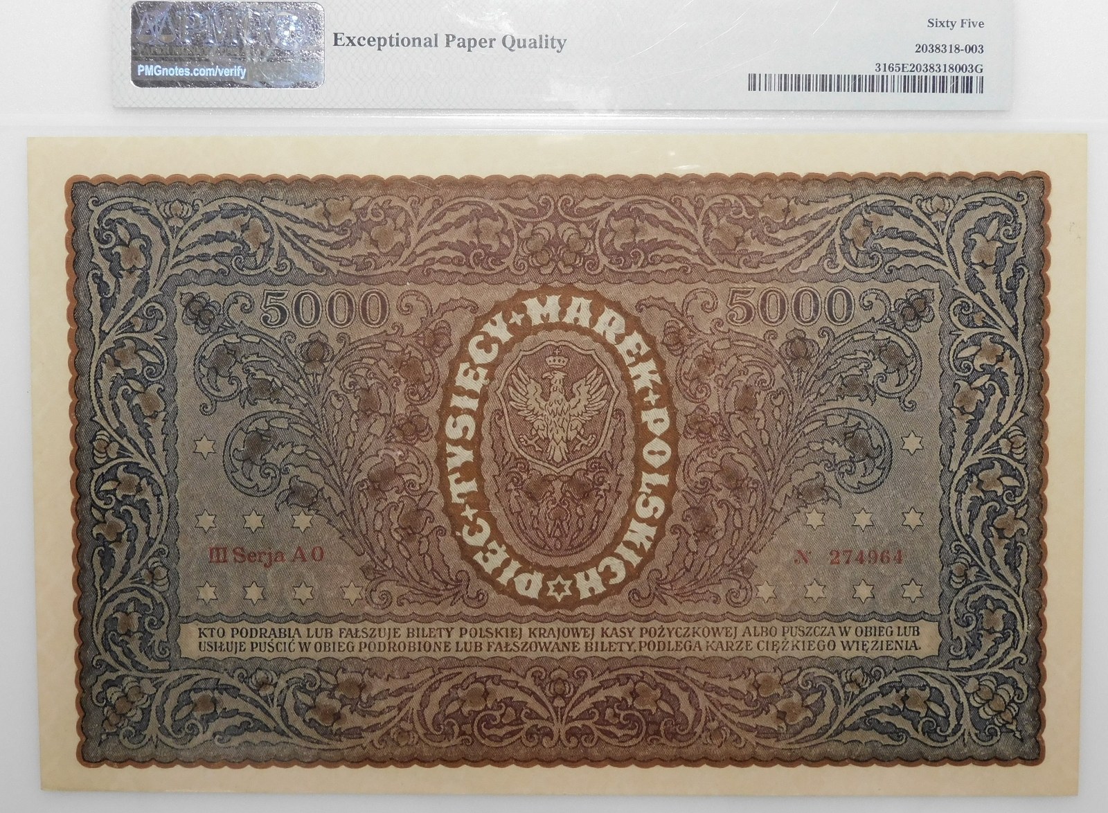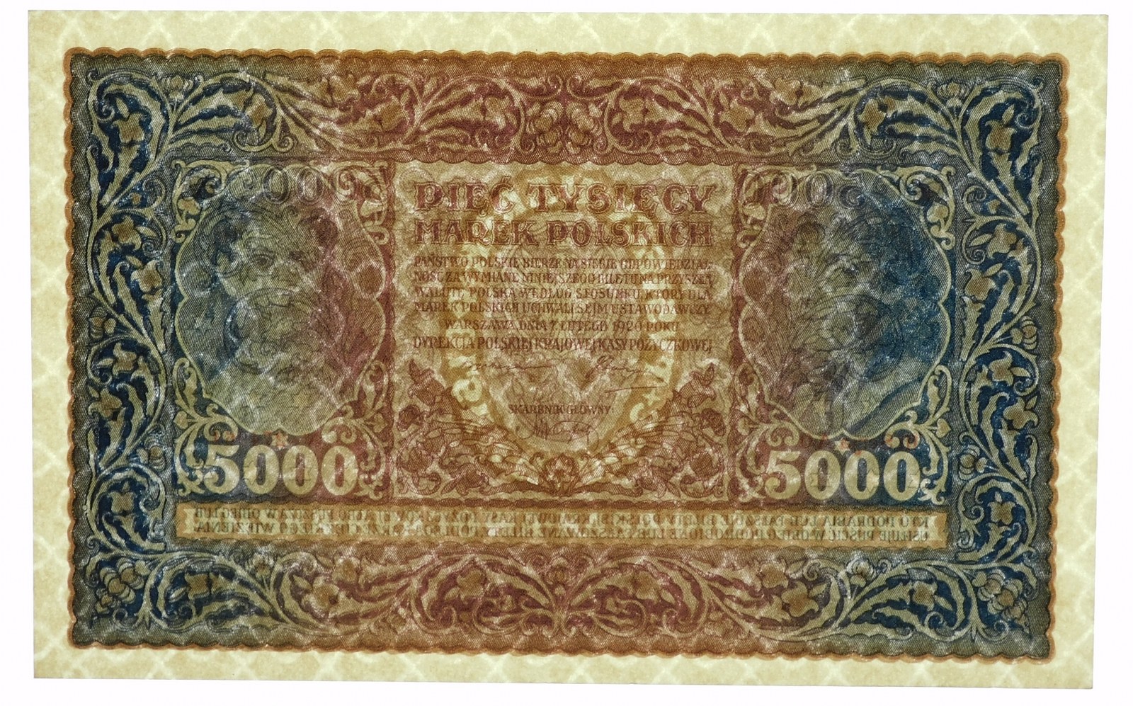 Banknot 5000 marek polskich 1920, serii : III Serja AO , tzw. emisji wiedeńskiej.