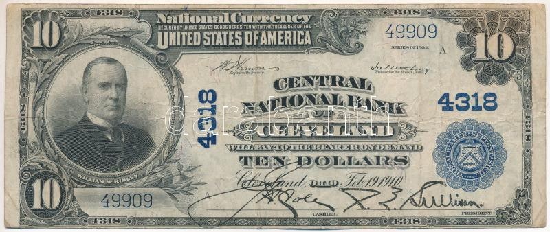Amerikai Egyesült Államok 1902 (1924-1929). 10$ "National Currency - Ohio, Cleveland" kék pecsét "A 49909" T:F ...