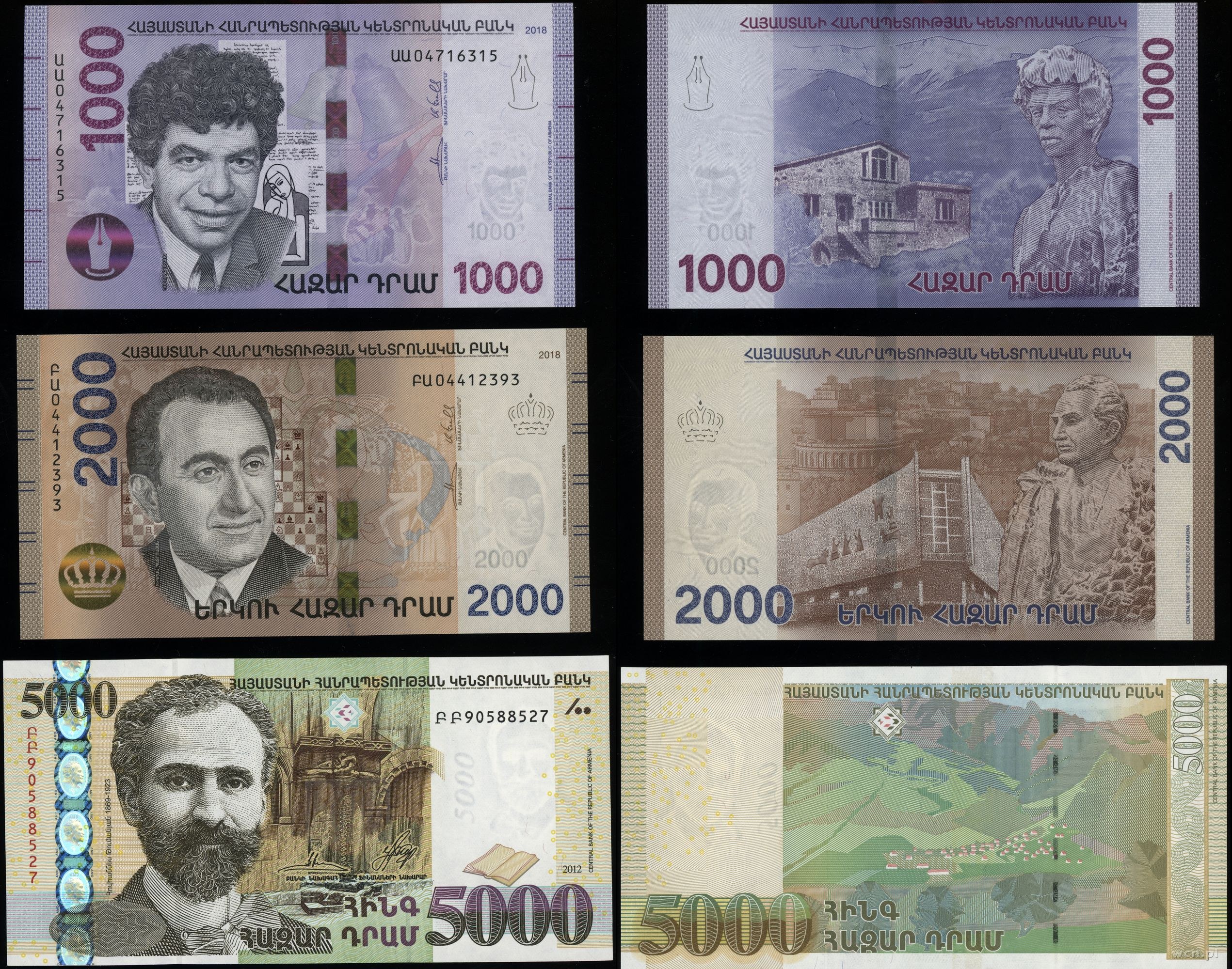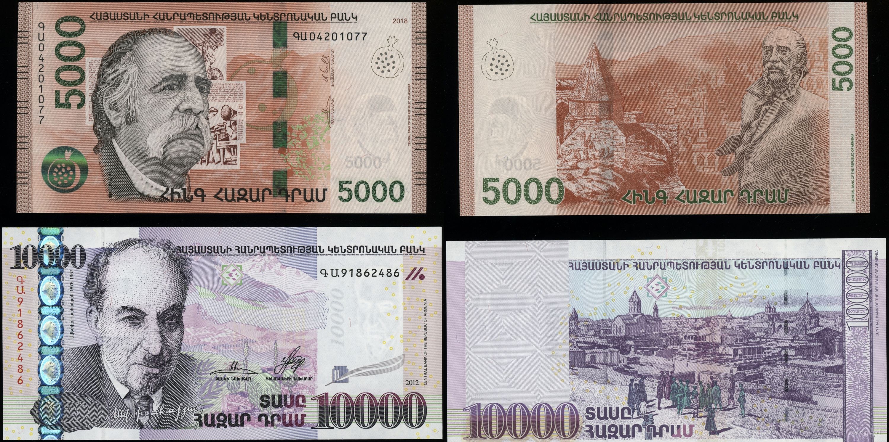 w zestawie: 10 dram 1993, 50 dram 1998, 1000 dram 2015, 1000 dram 2018, 2000 dram 2018, 5000 dram 2012, 5000 dram 2018, 10000 dram 2012