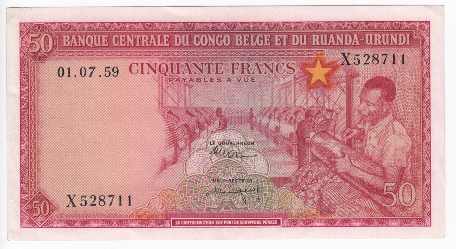 Belgian Congo 50 Francs 1959