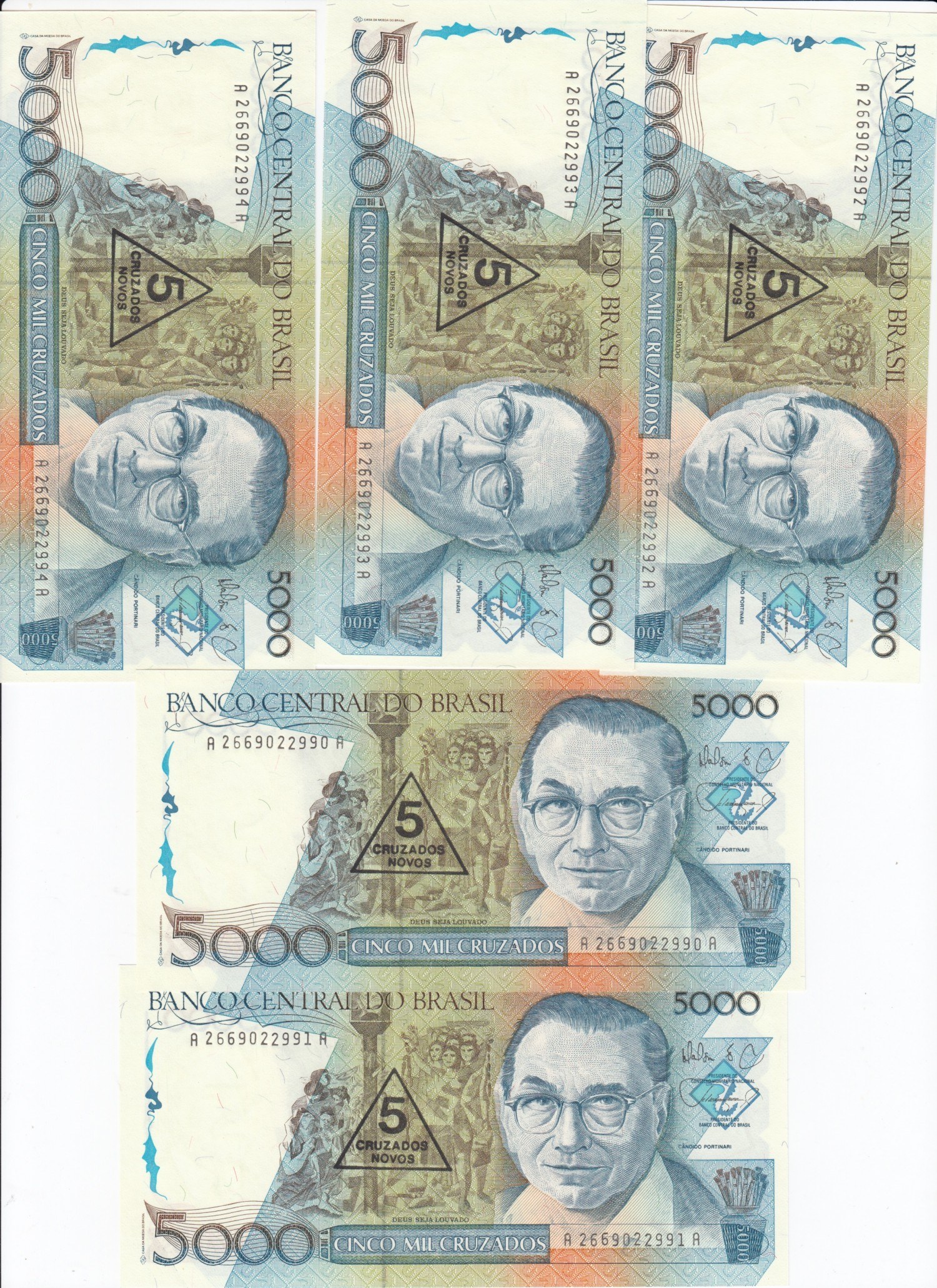 Brazil 5000 Cruzados ND (1988)- Consecutive numbers (5)