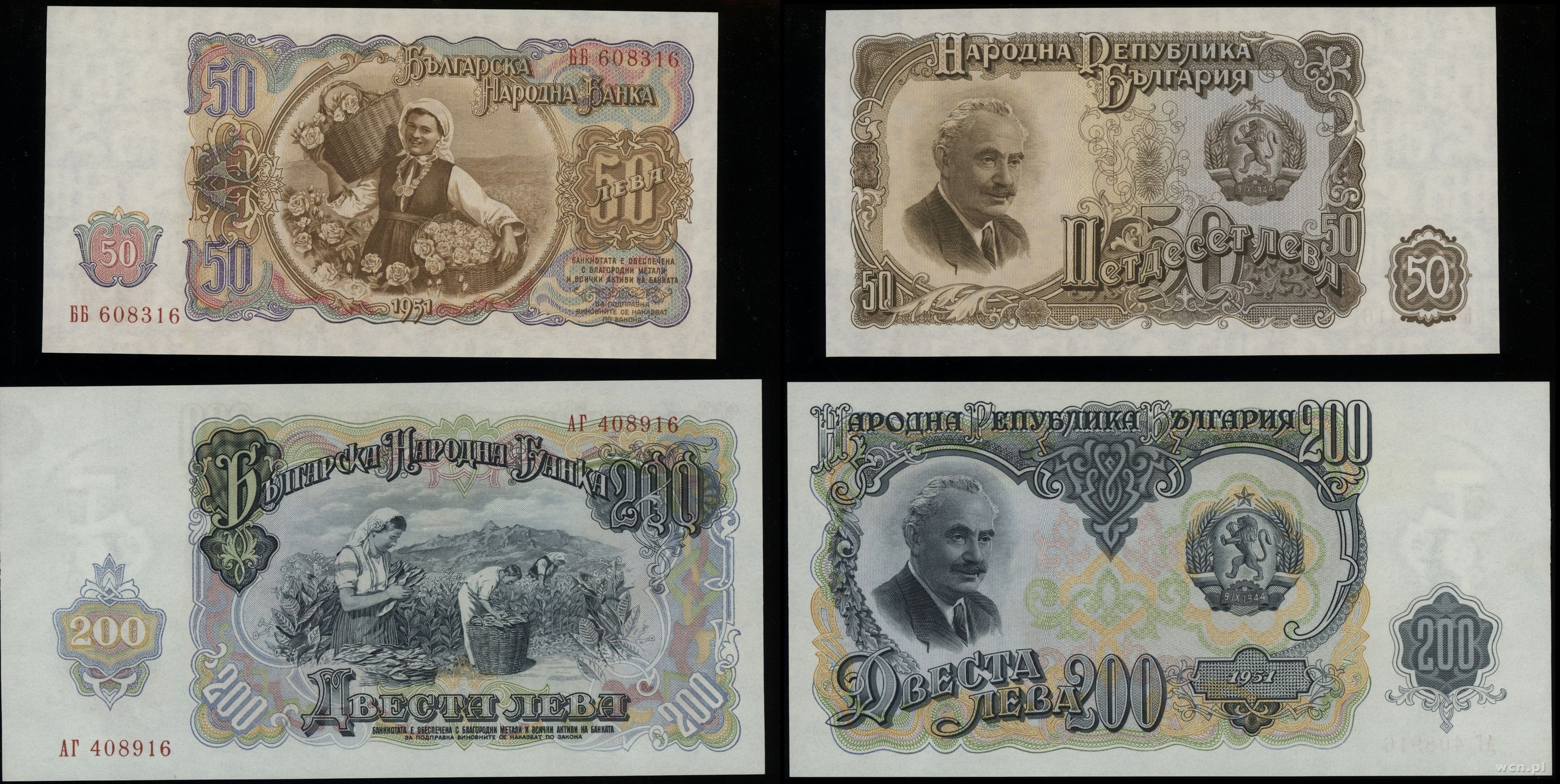 1) 50 lewa 1951 seria ББ 2) 200 lewa 1951 seria АГ