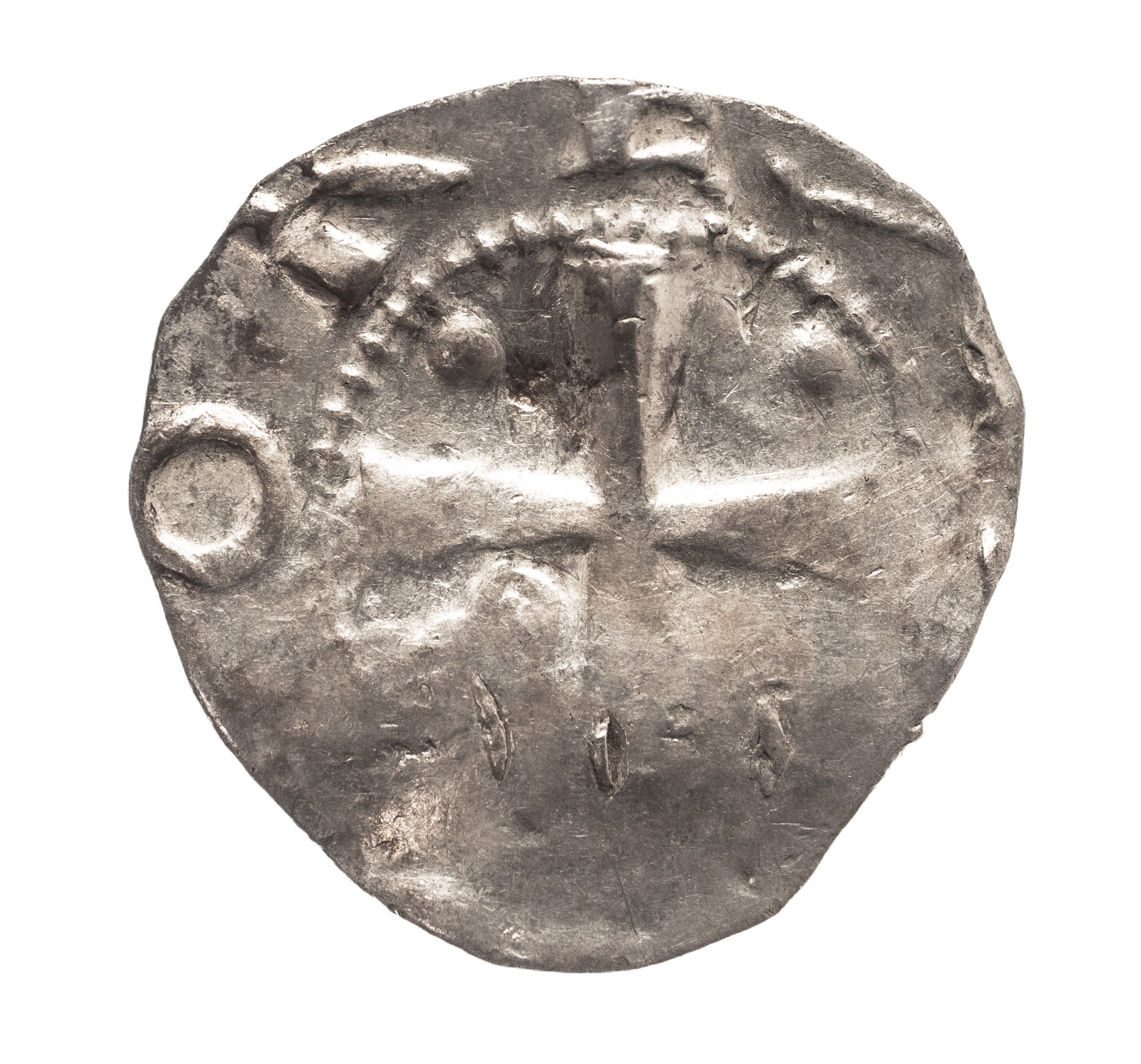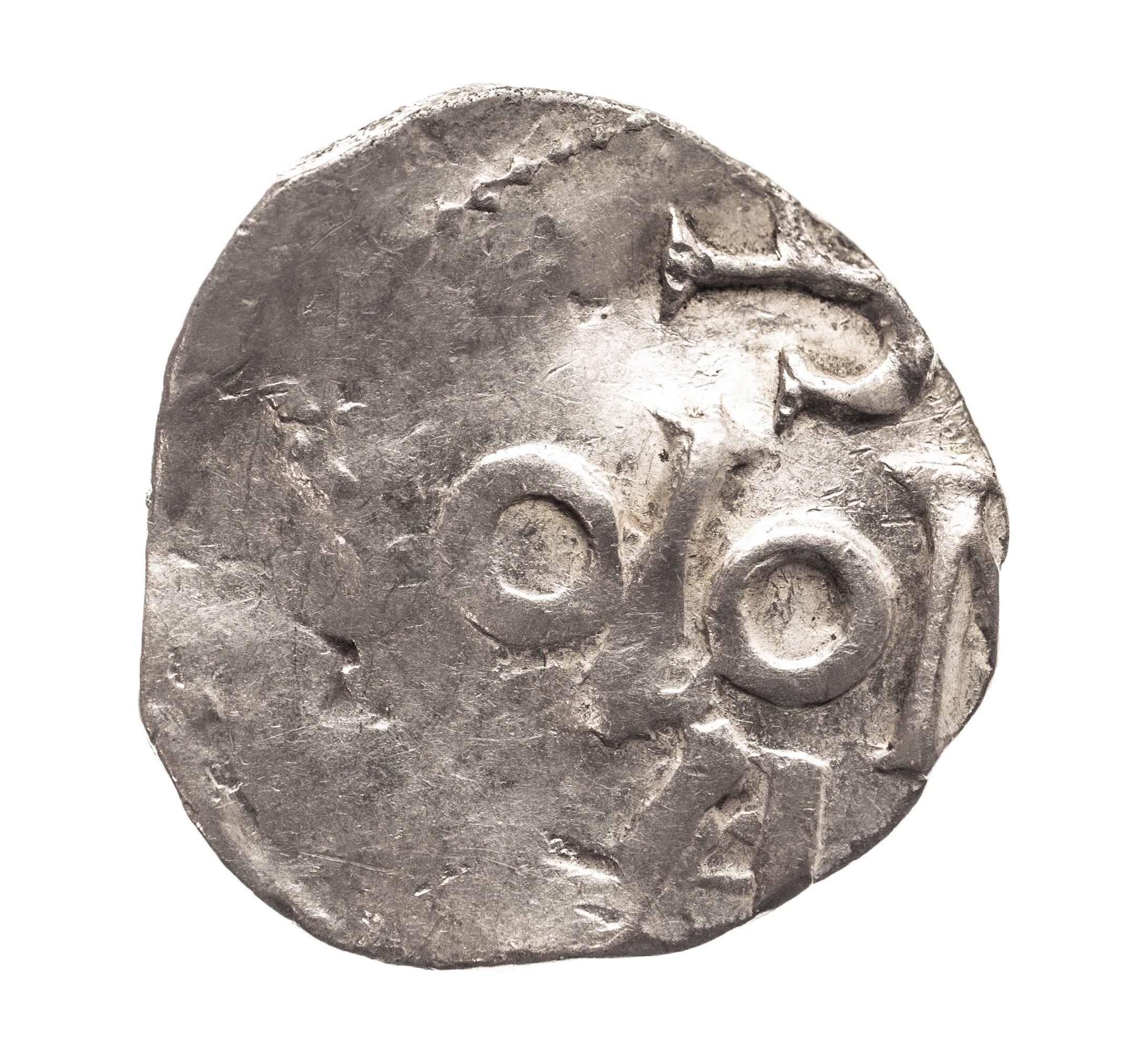 Krzyż prosty, wokoło OTTO REX / Napis poziomy S COLONIA A, srebro 16 mm, 1.80 g, gięty.