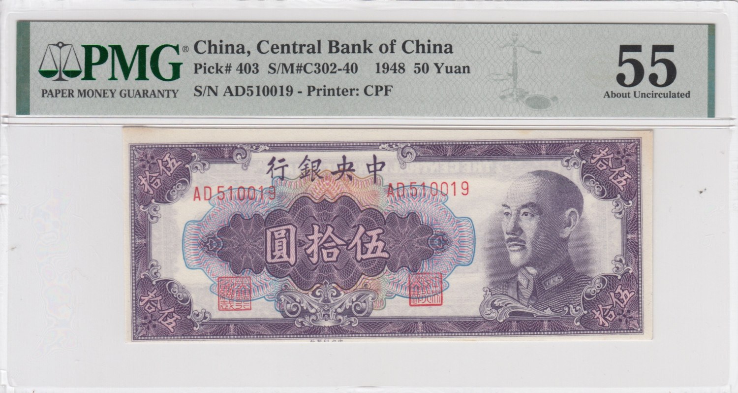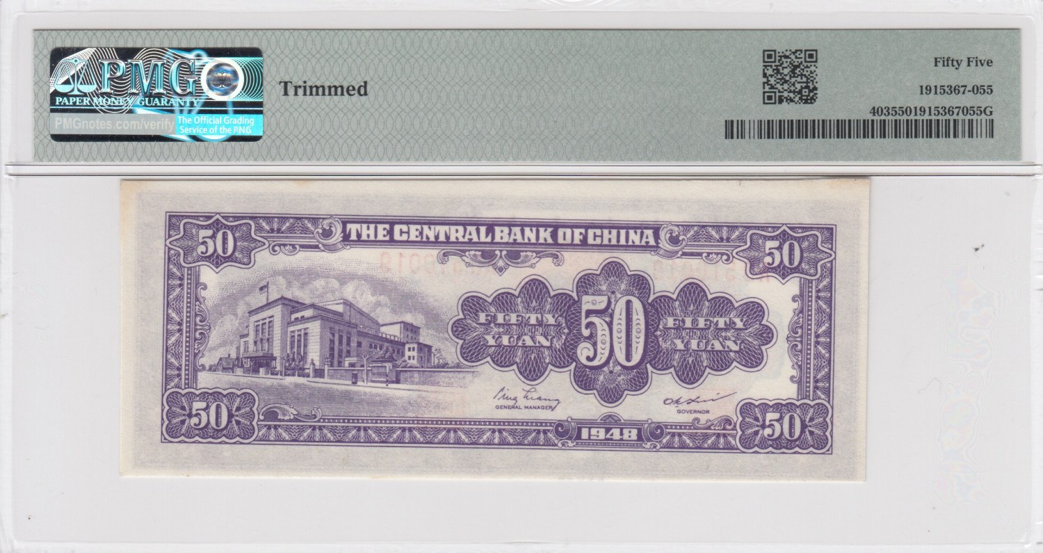 China 50 Yuan 1948 - PMG 55 About Uncirculated