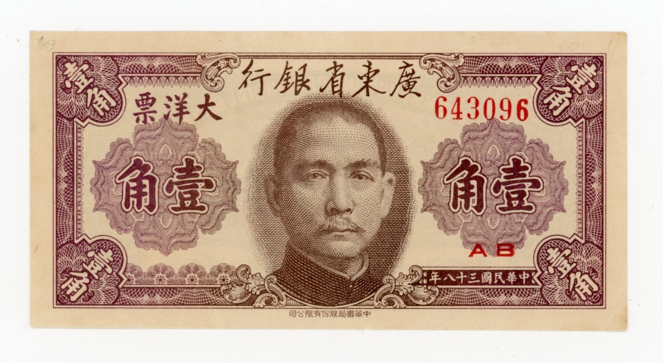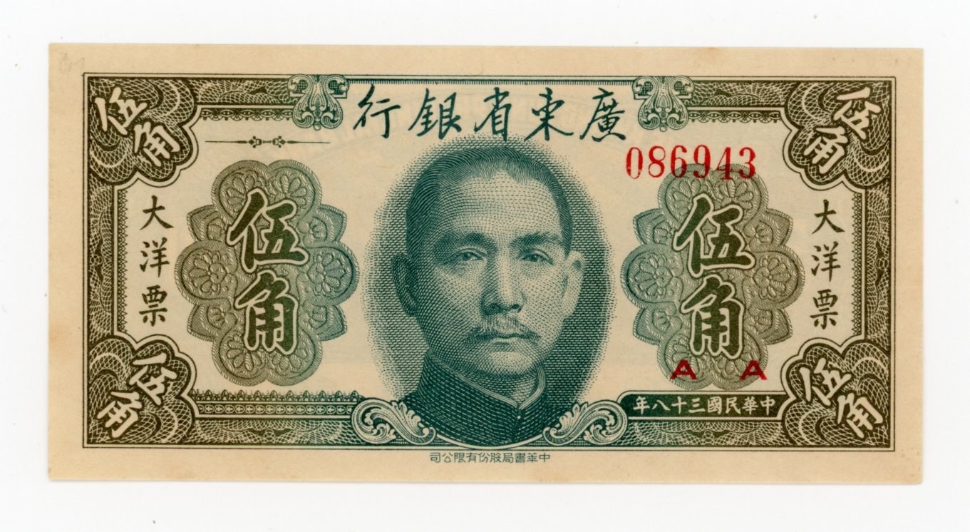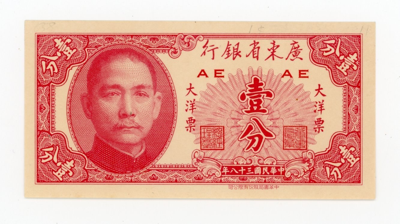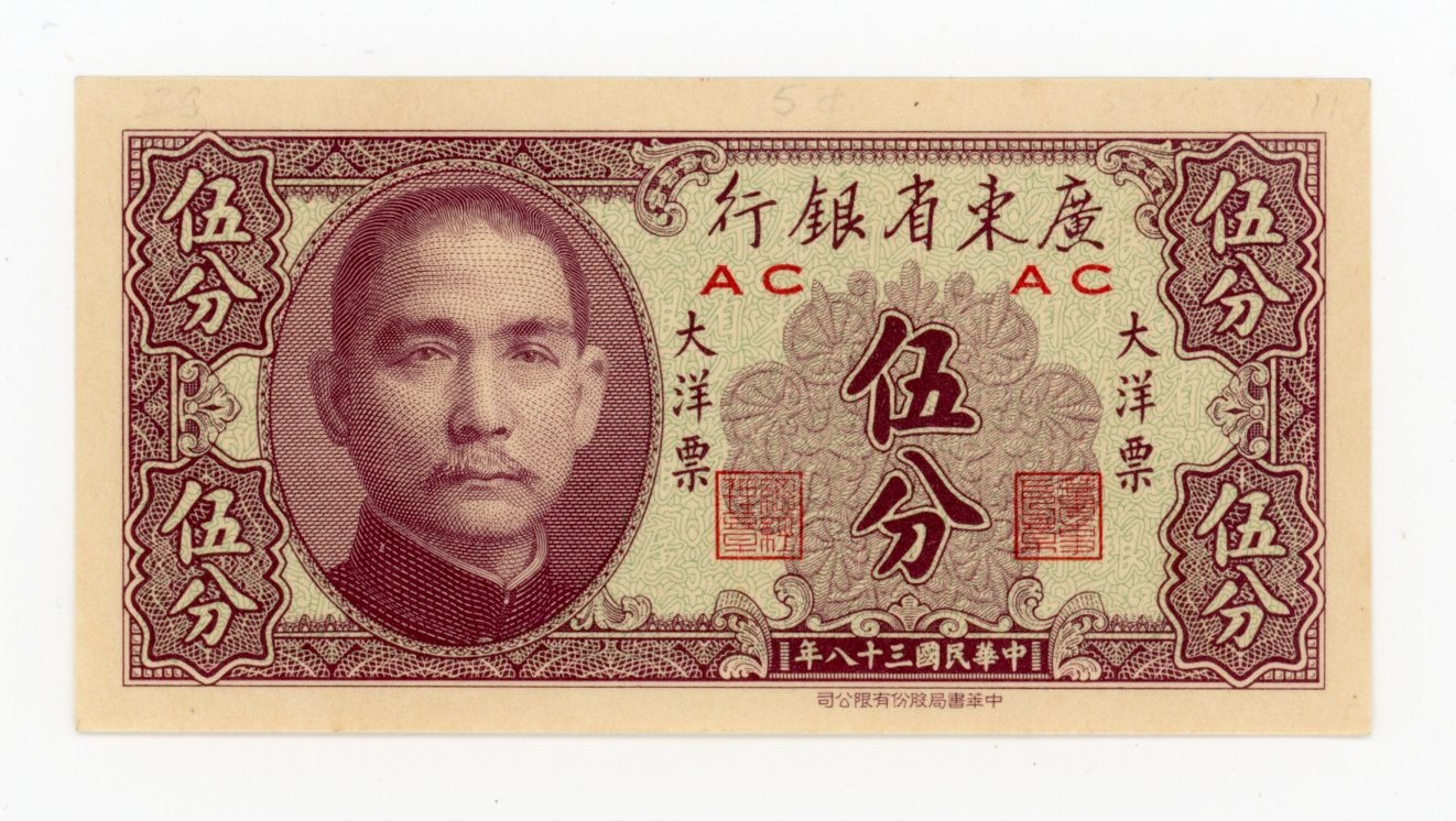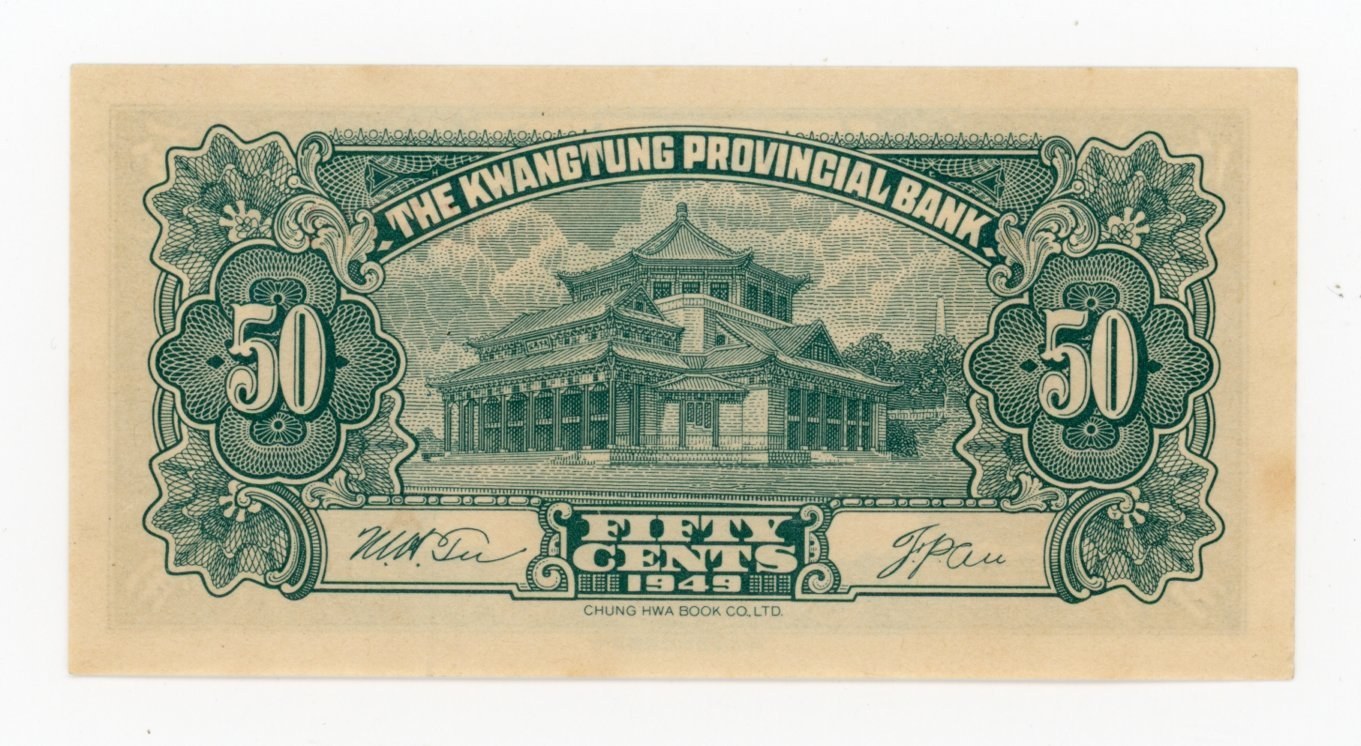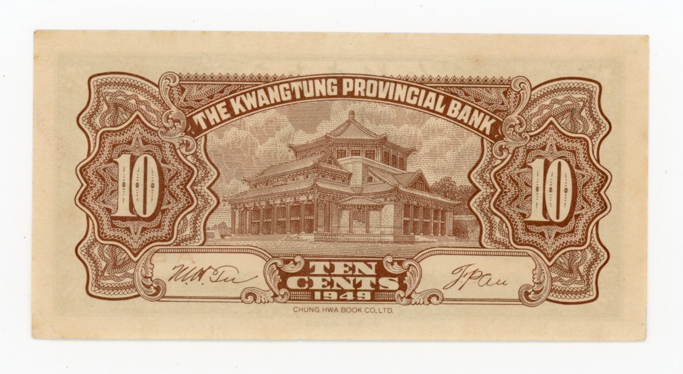 Chiny, Kwangtung, zestaw 1, 5, 10 i 50 centów 1949. Razem 4 szt. Stan zachowania 1, jedynie banknot 10 centów stan zachowania 1/1-. Literatura: Pick S2452-2455