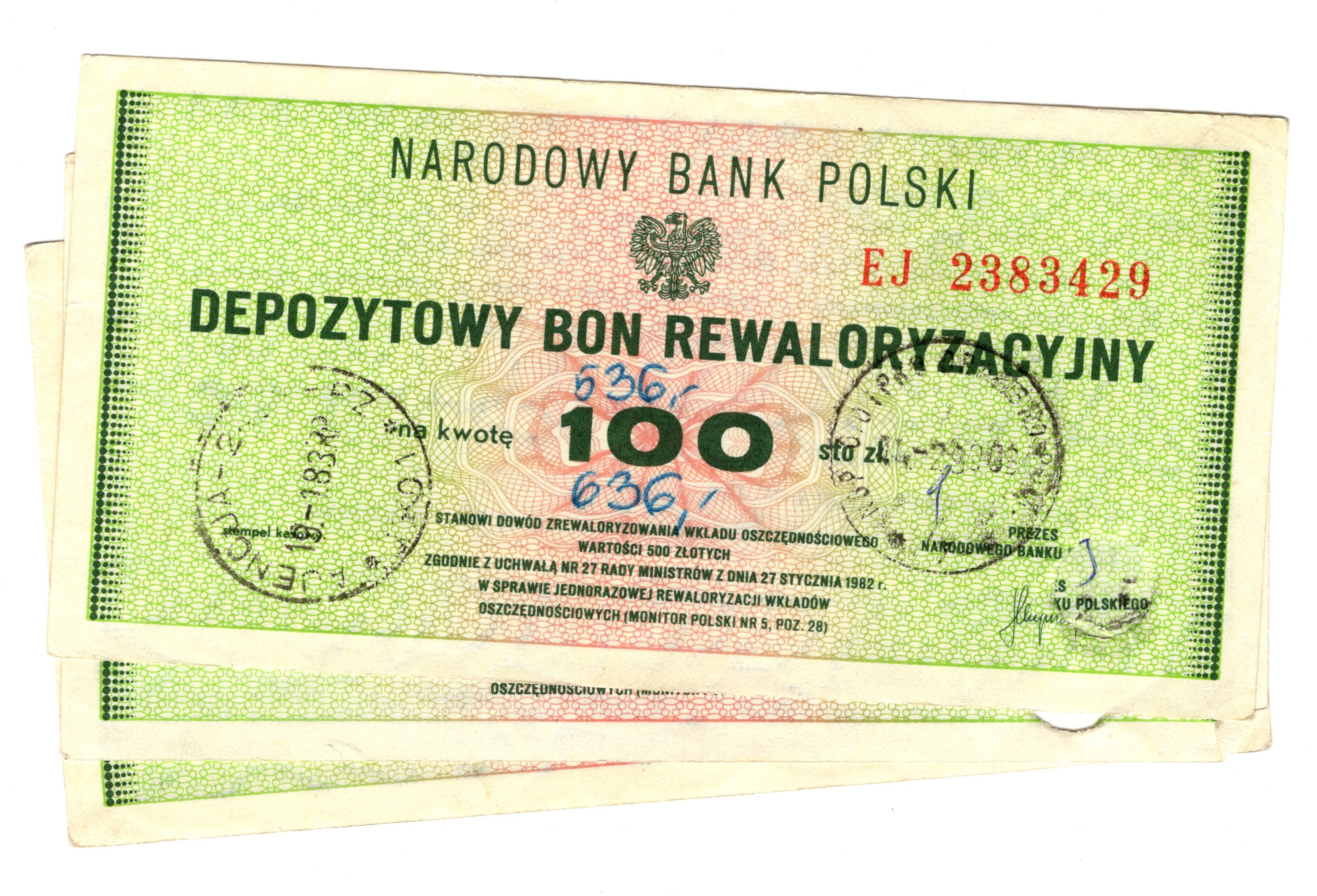 Depozytowy Bon Rewaloryzacyjny, 100 Złotych, seria EJ - zestaw 3 sztuk