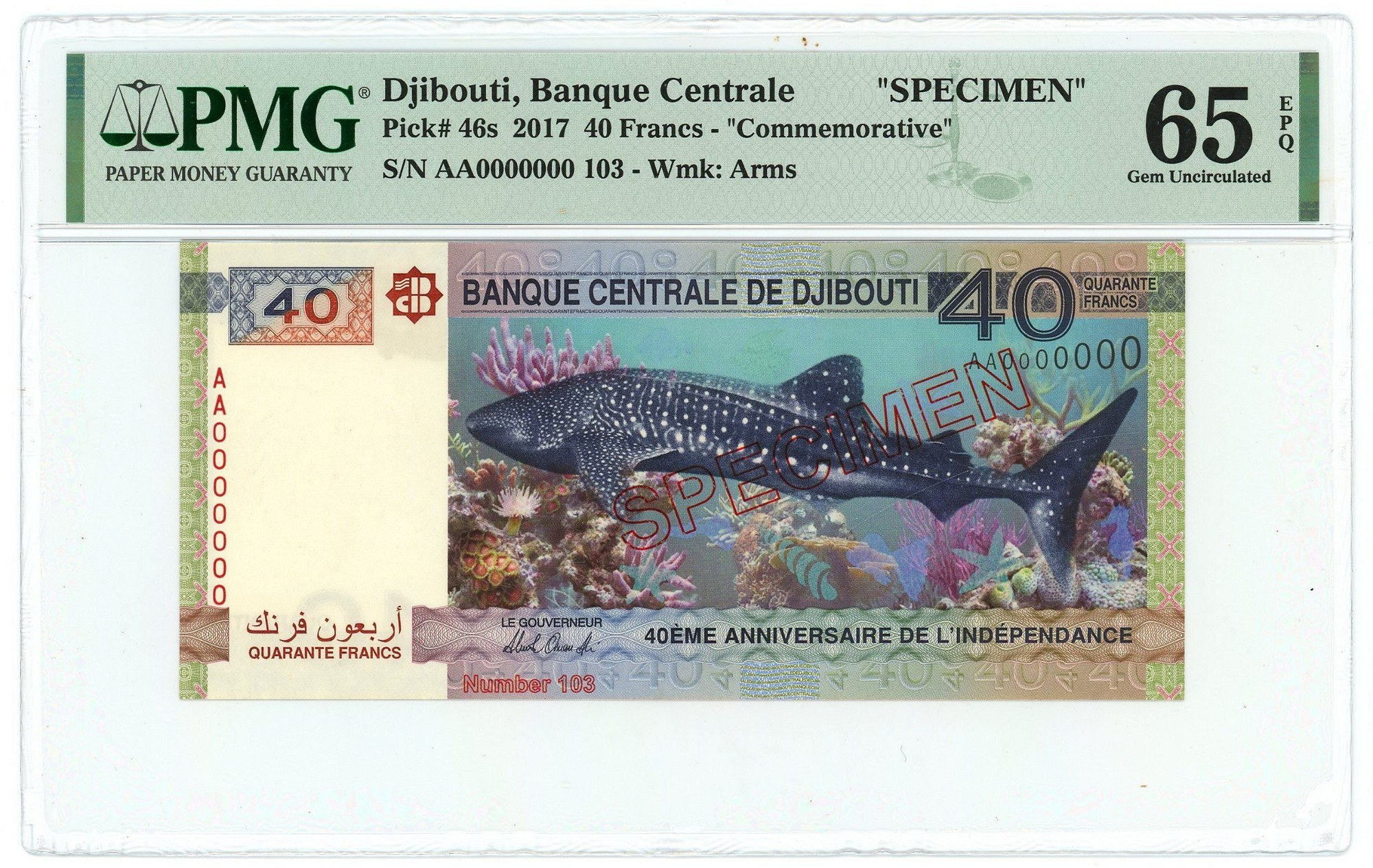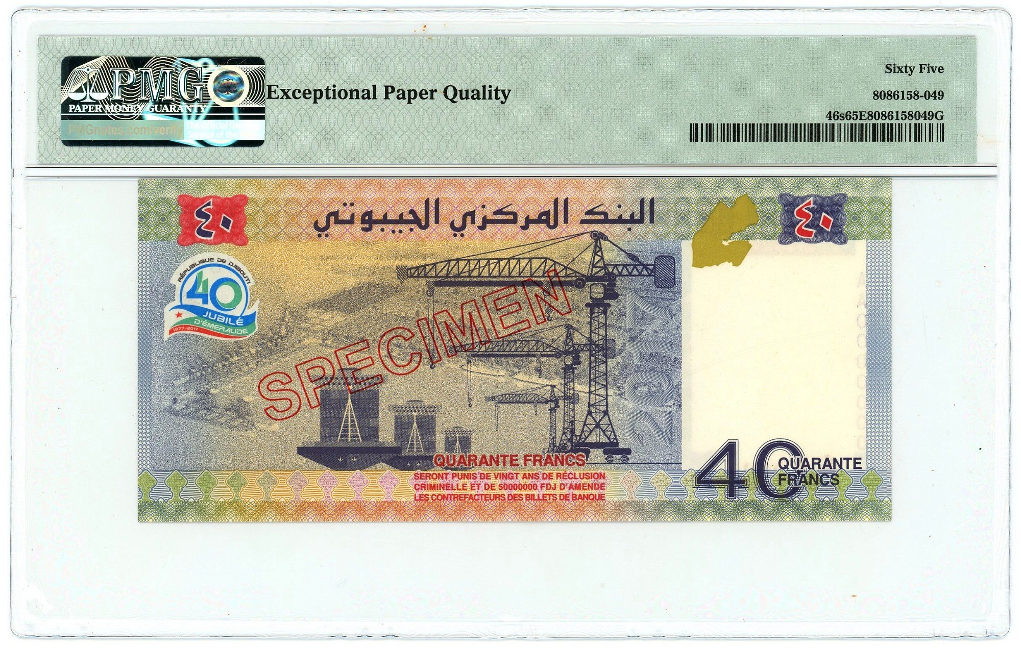 Djibouti 40 Francs 2017 Specimen PMG 65 EPQ Gem UNC