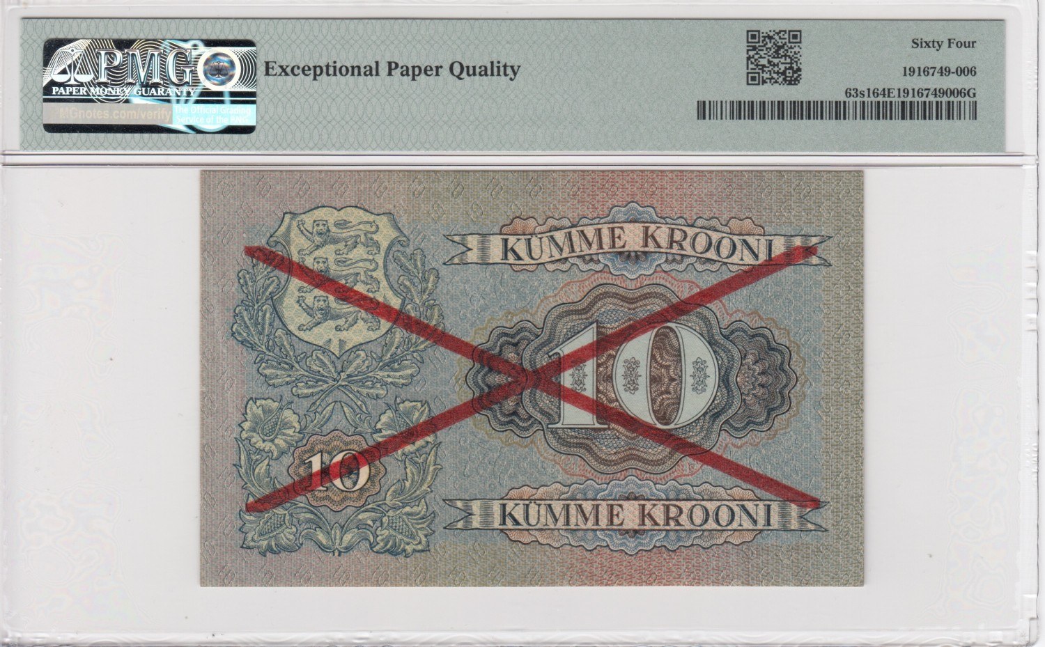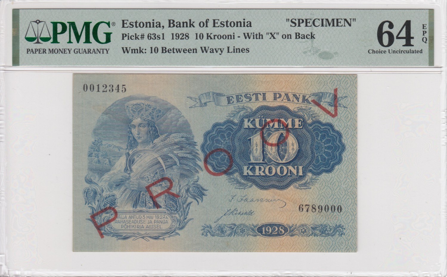 Estonia 10 Krooni 1928 - SPECIMEN - PMG 64 EPQ Choice Uncirculated