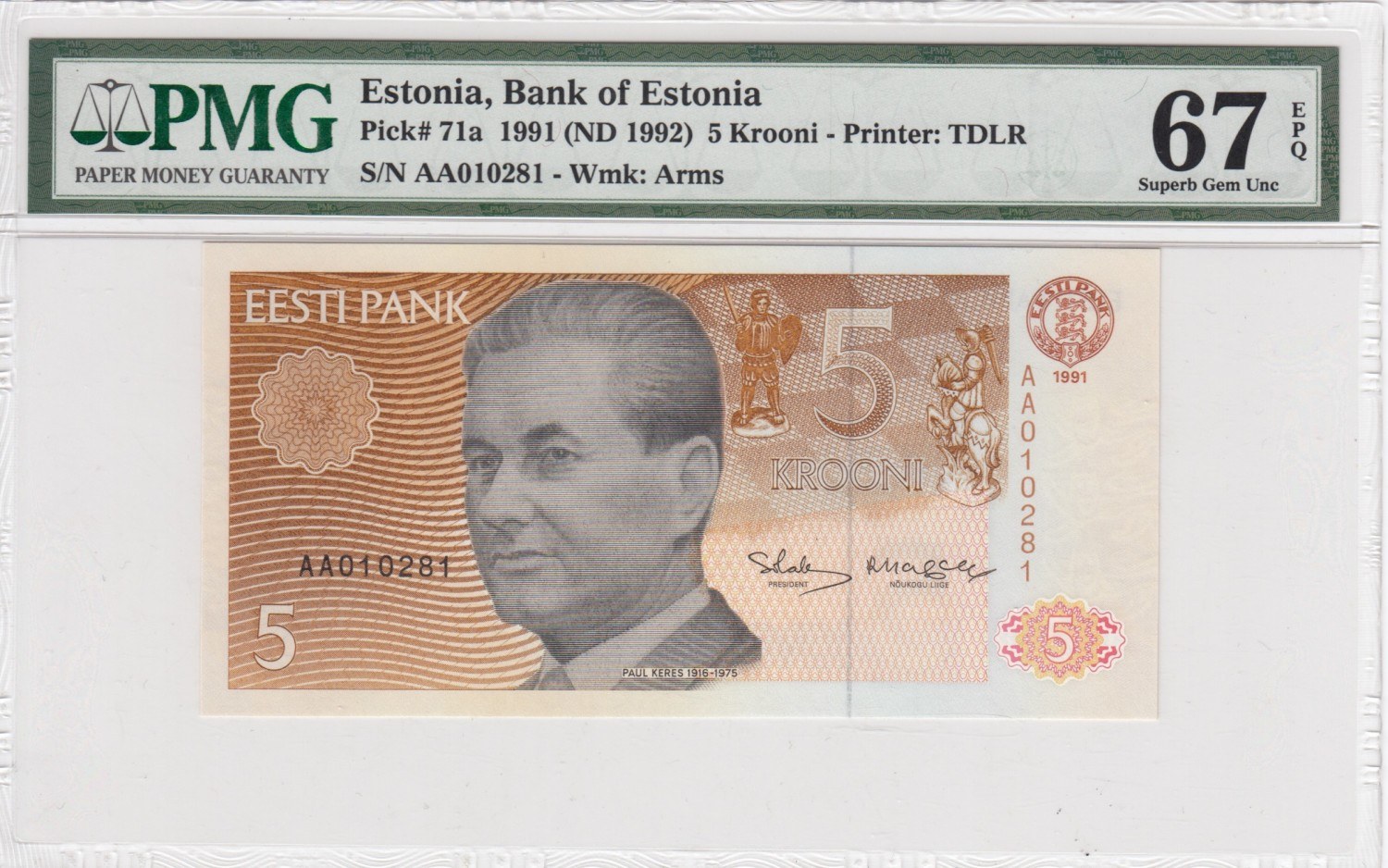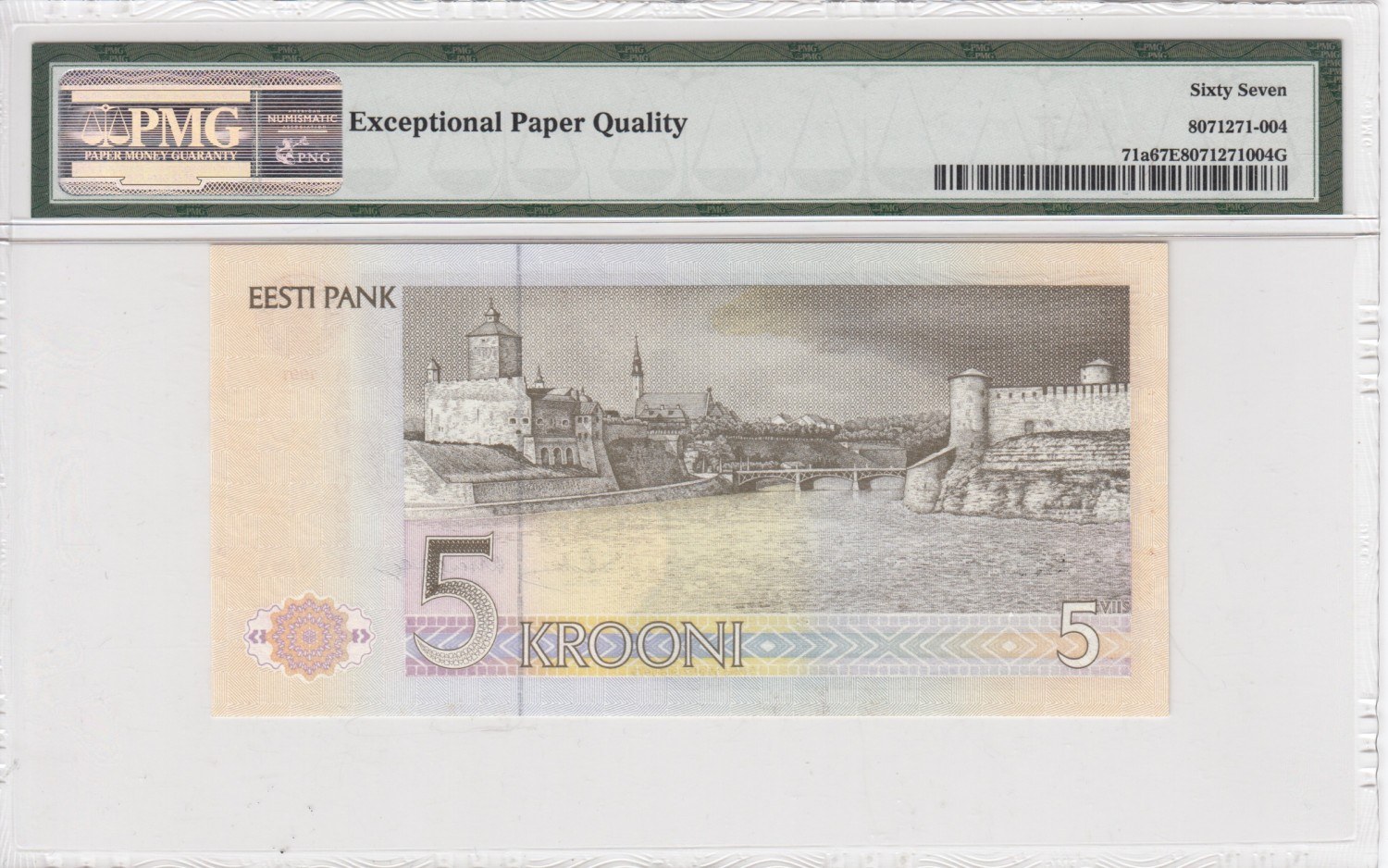 Estonia 5 Krooni 1991 (ND 1992) - PMG 67 EPQ Superb Gem Unc