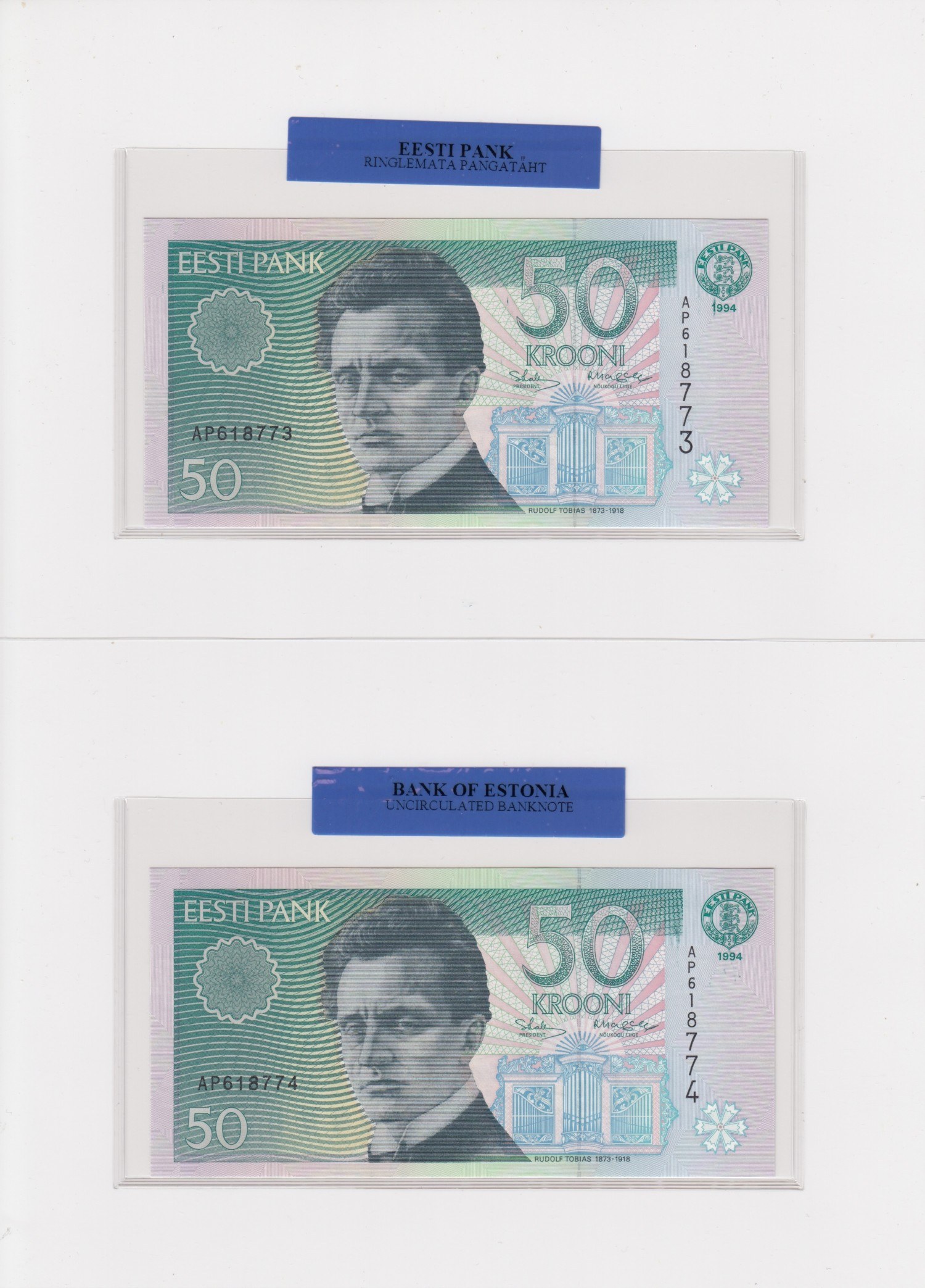 Estonia 50 Krooni 1994 - Uncirculated Banknote - Consecutive numbers (2)