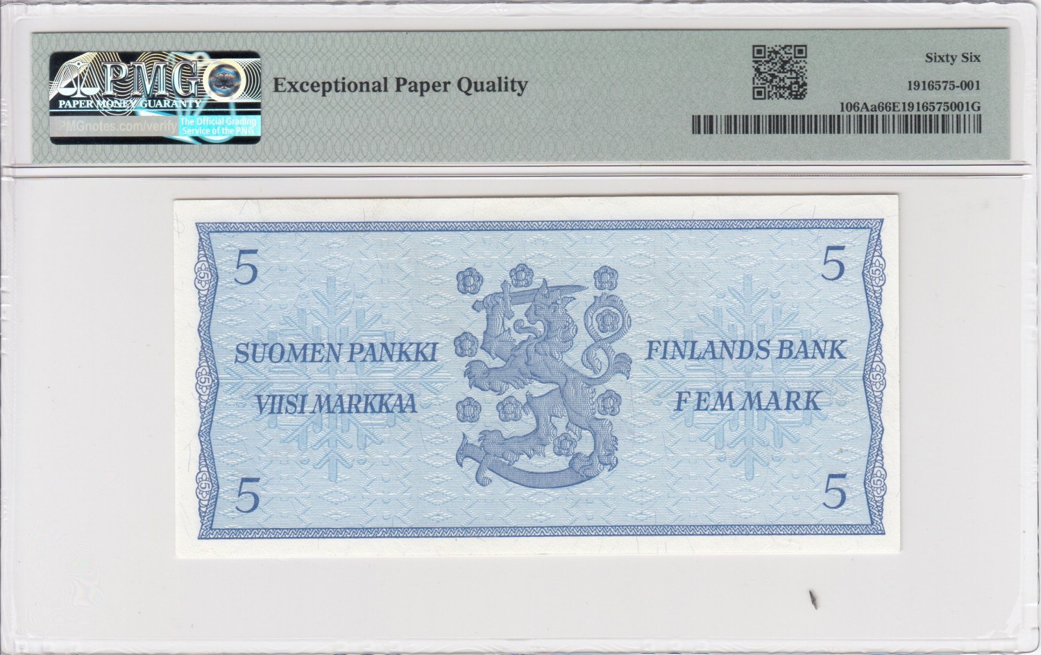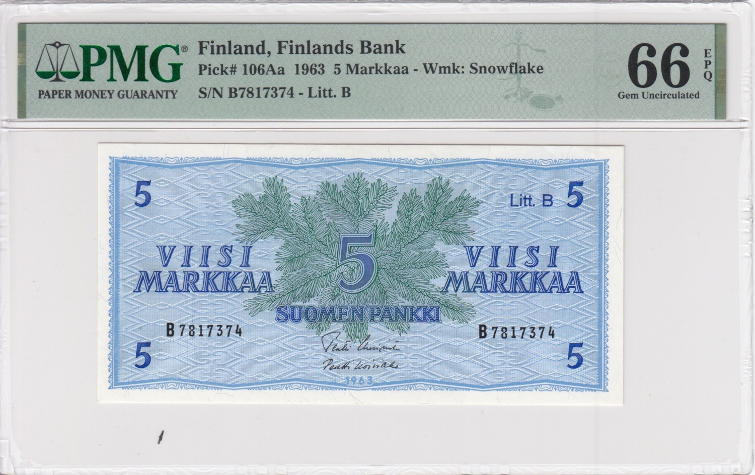 Finland 5 Markkaa 1963 - PMG 66 EPQ Gem Uncirculated