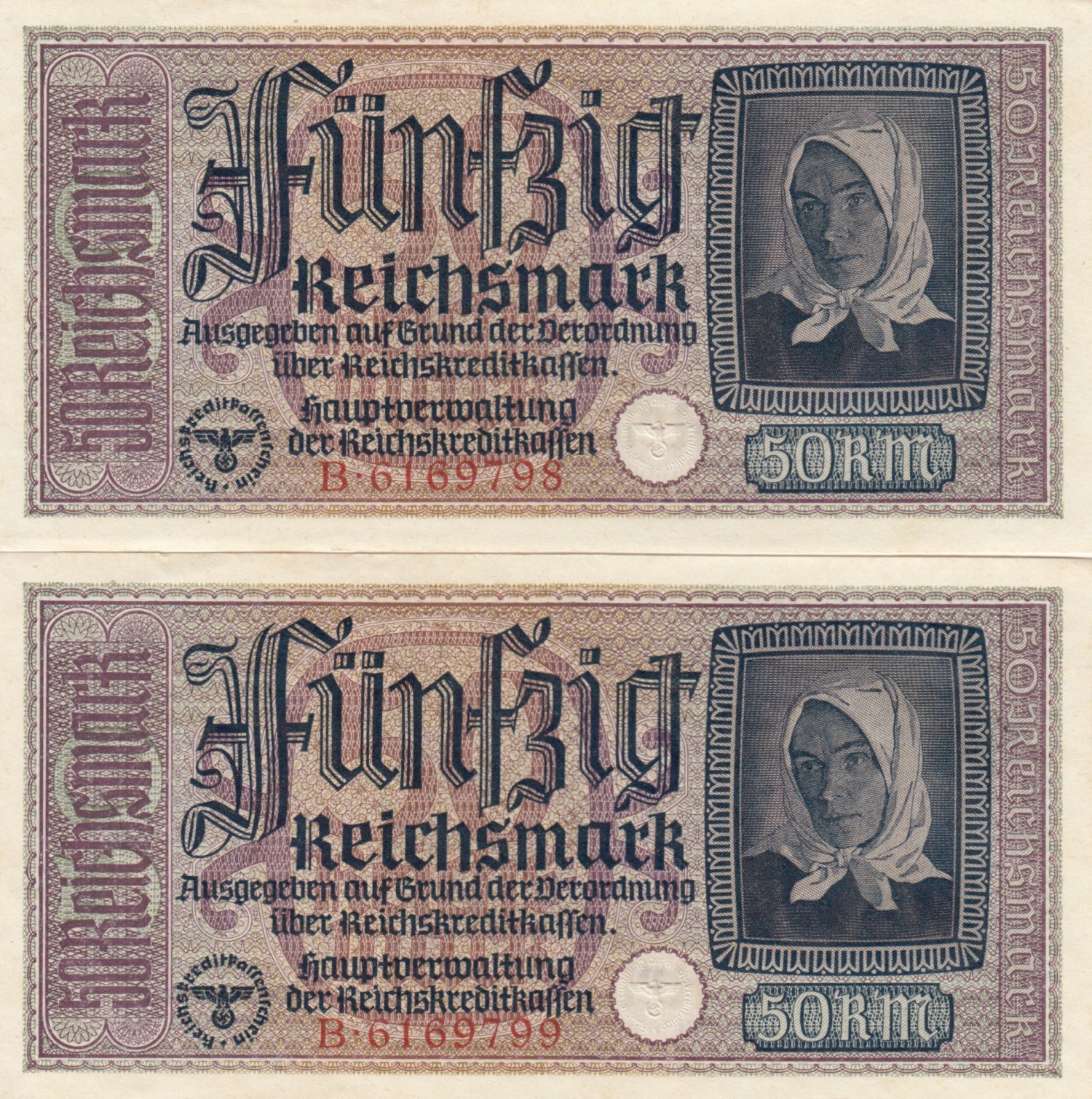 Germany 50 Reichsmark 1940 (2) Sequential #