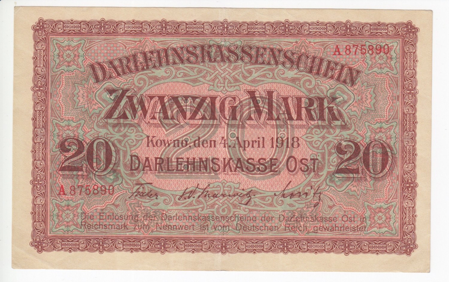 Germany (Occupation of Lithuania WWI, Kowno) 20 Mark 1918