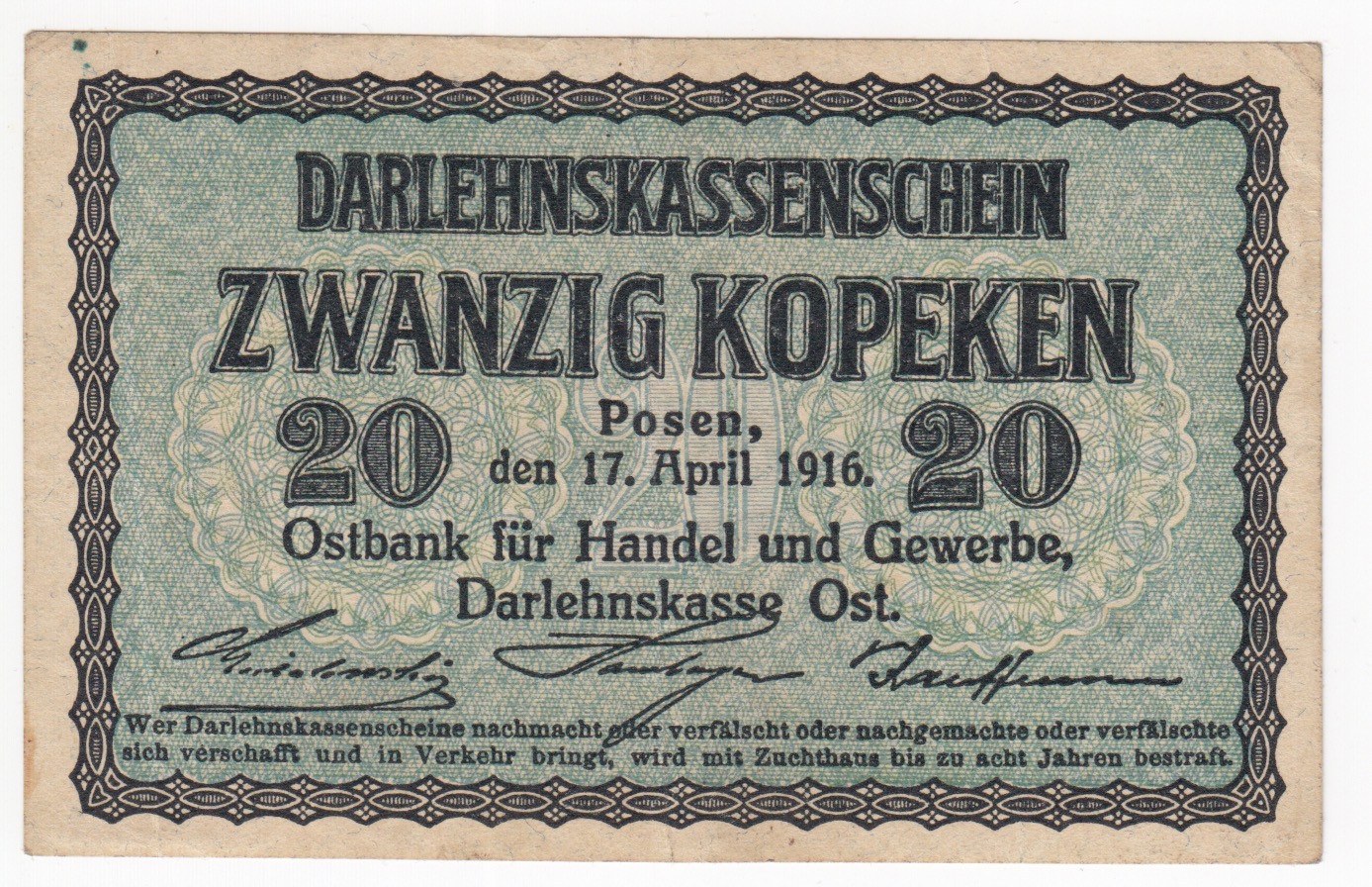Germany (Occupation of Lithuania WWI, Posen) 20 Kopeken 1916