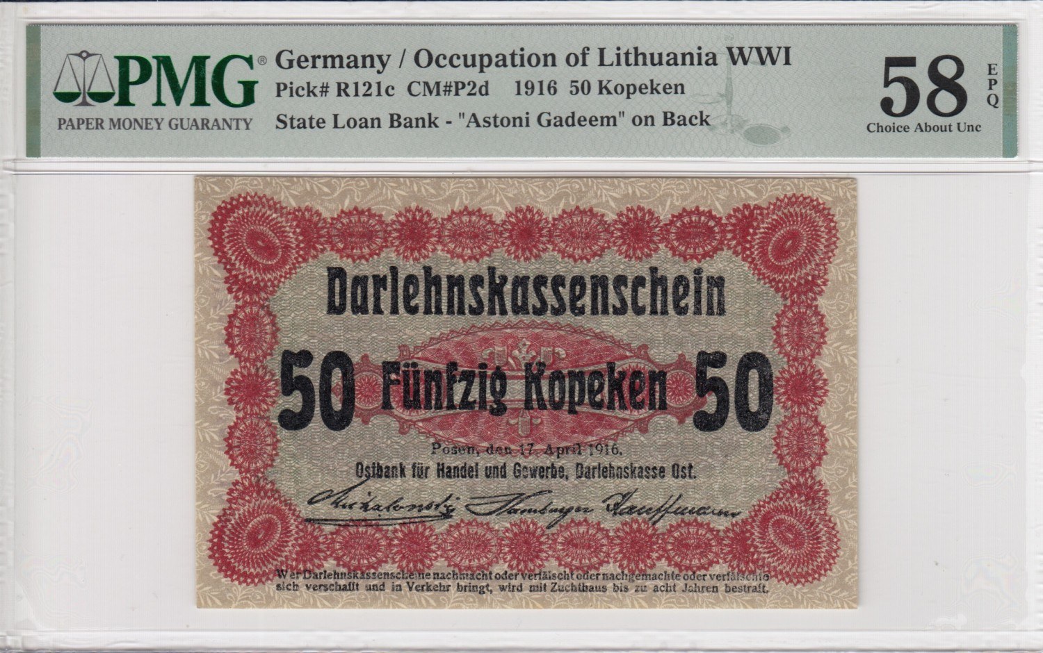 Germany (Occupation of Lithuania WWI, Posen) 50 Kopeken 1916 - PMG 58 EPQ Choice About Unc