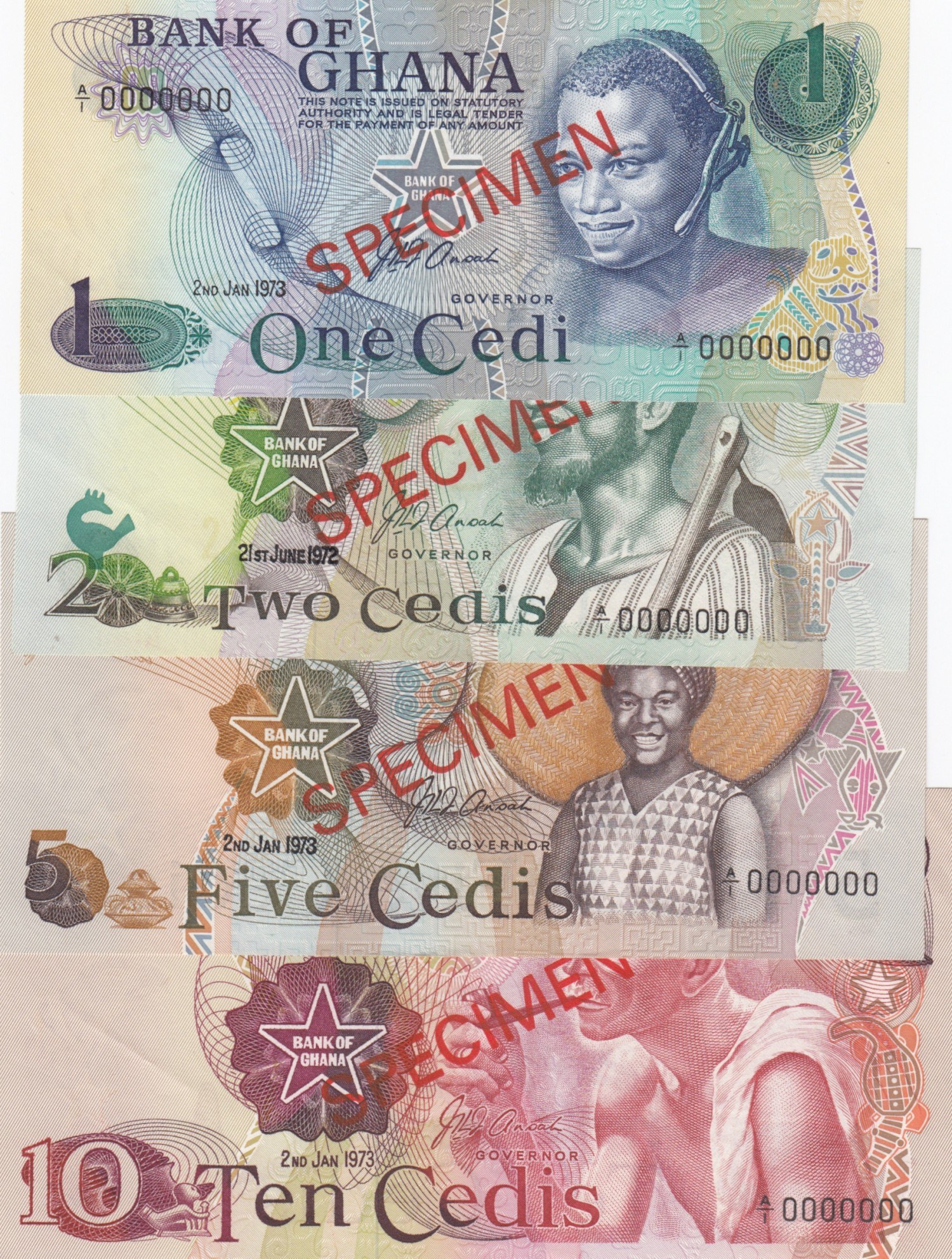 Ghana 1,2,5,10 Cedis 1972-73 (4) Specimens