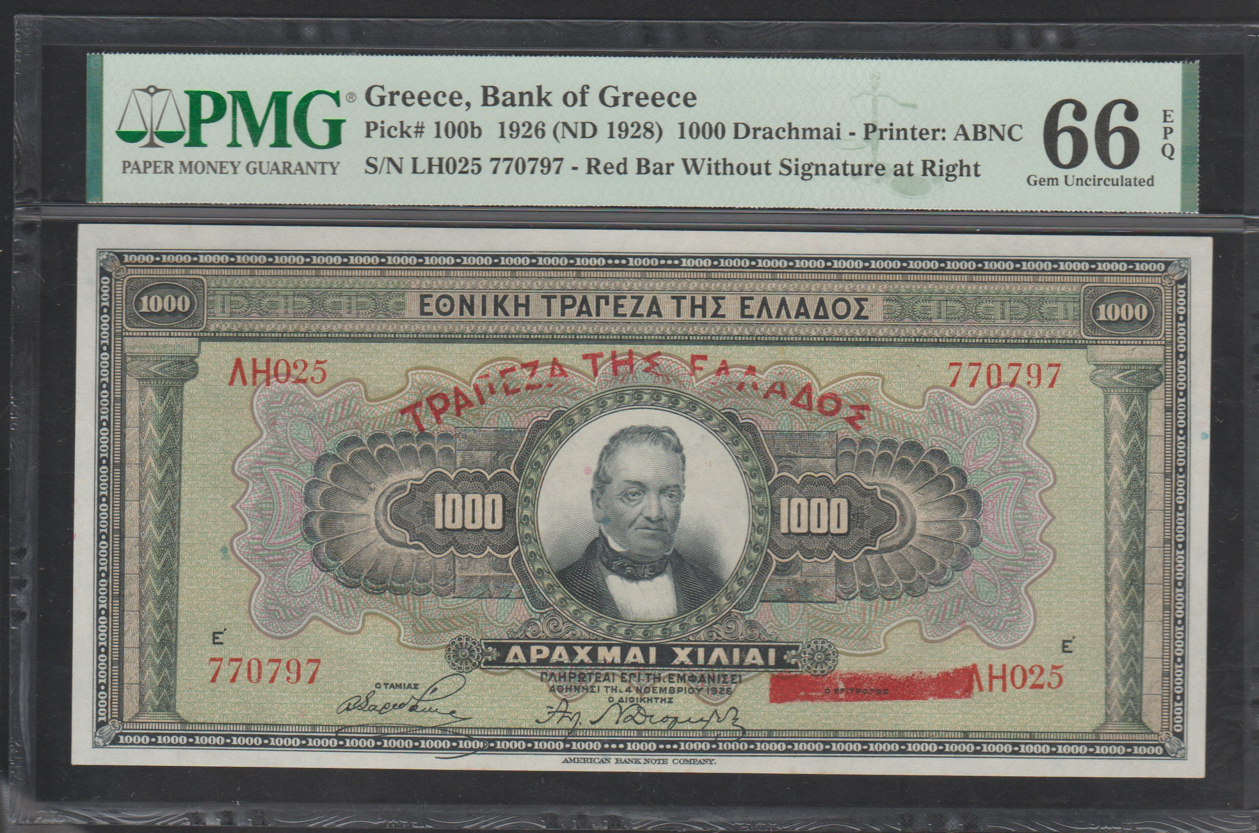 Pick# 100b 1926 (ND 1928) 1000 Drachmai - Printer: ABNC