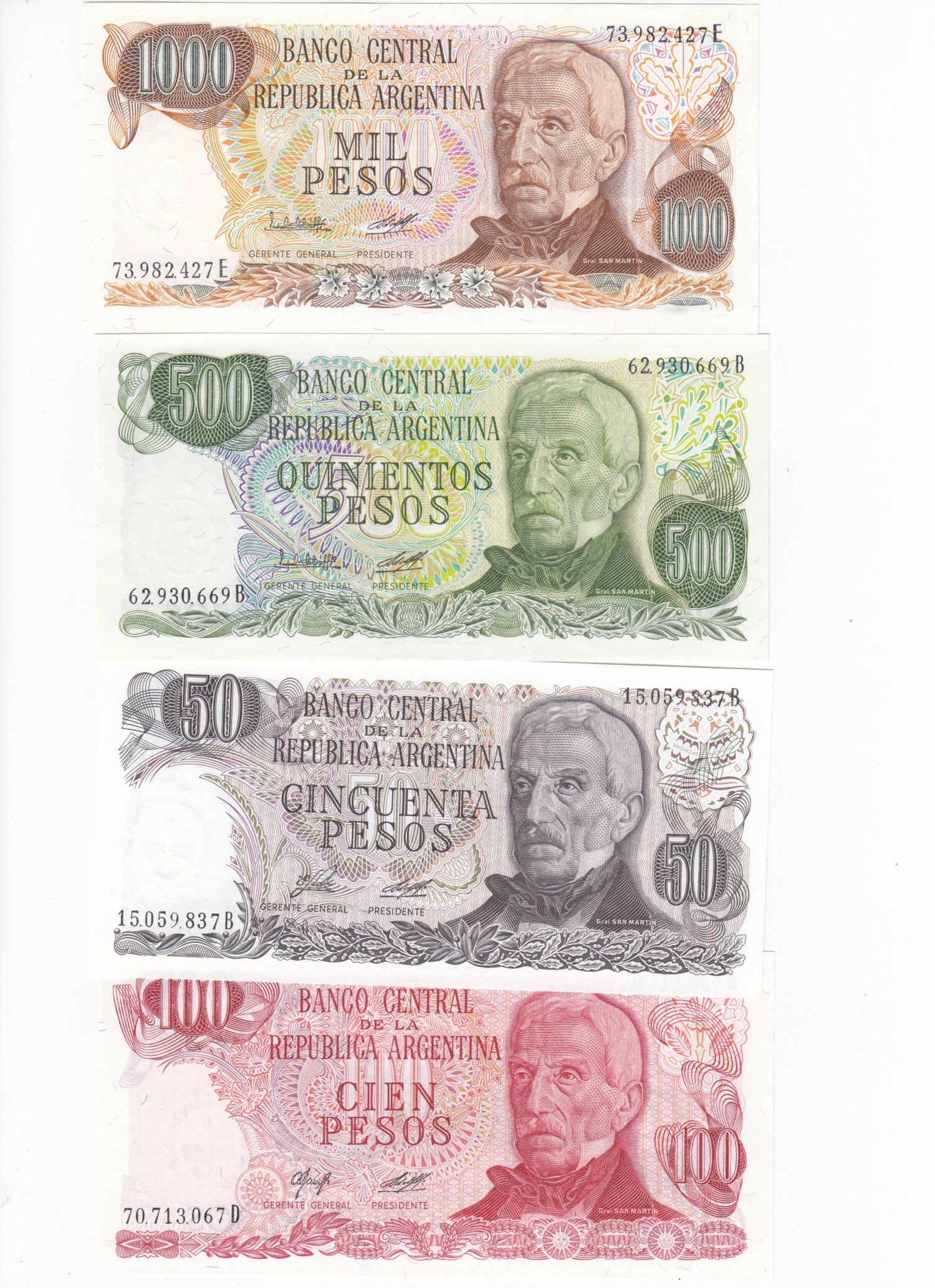 UNC. 1000 Pesos 1966-1969, Pick 279.1 Peso 1970-1973, Pick 287.5 Pesos 1974-1976, Pick 294.10 Pesos 1976, Pick 300.50 Pesos 1976-1978, Pick 301.100 Pesos 1976-1978, Pick 302.500 Pesos 1977-1982, Pick 303.1000 Pesos 1976-1983, Pick 304.