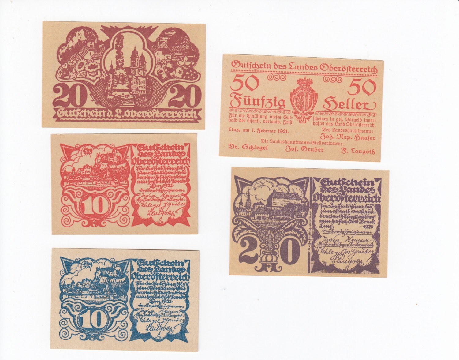 Group of Banknotes: Austria, Set of Notgeld - Öberösterreich (5)