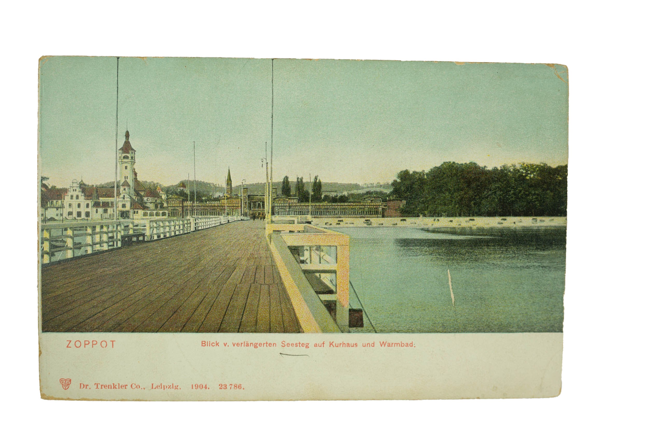 SOPOT - Zoppot Blick v. verlängerten Seesteg auf Kurhaus und Warmbad, bez obiegu, długi adres, wyd. Dr. Trenkler & Co., f. 13,9 x 8,9cm, [1]