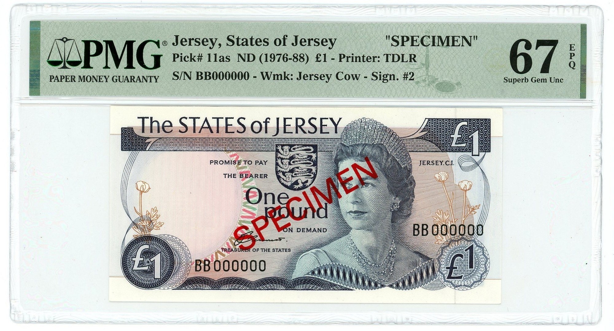 Jersey 1 Pound 1976 - 1988 (ND) Specimen PMG 67 EPQ Superb Gem Unc
