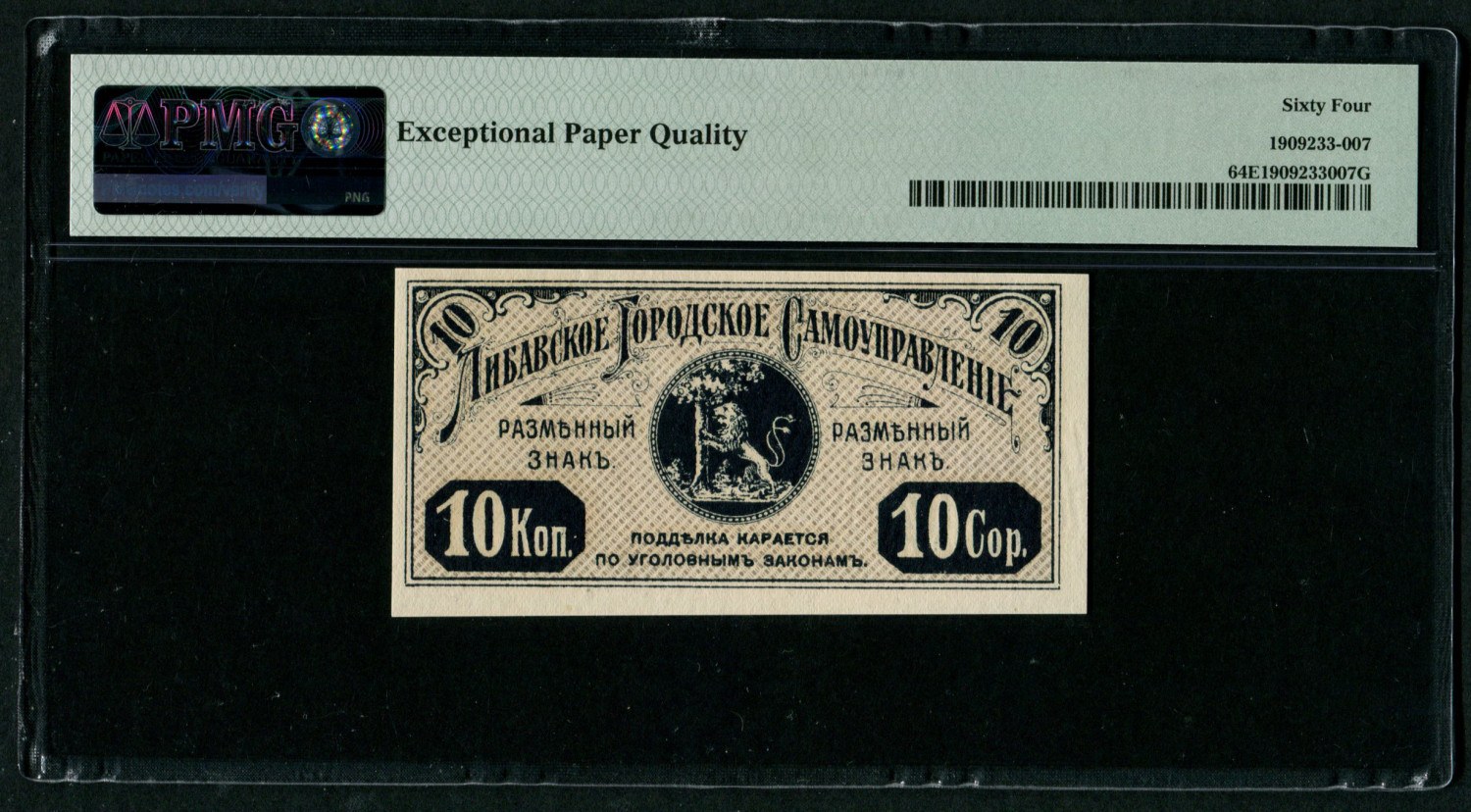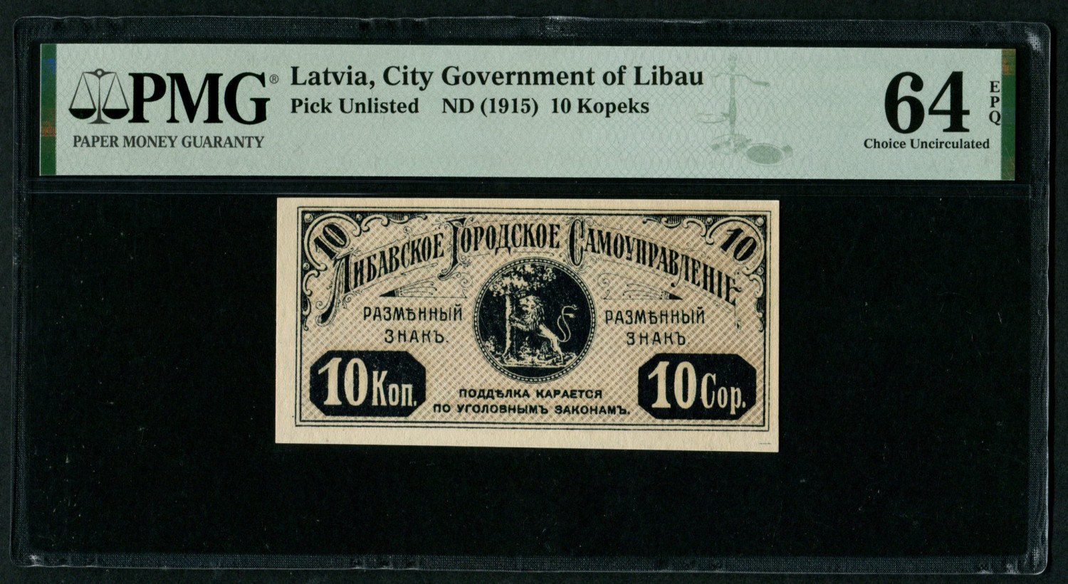 Latvia Libau 10 Kopecks ND (1915) - PMG 64 EPQ Choice Uncirculated