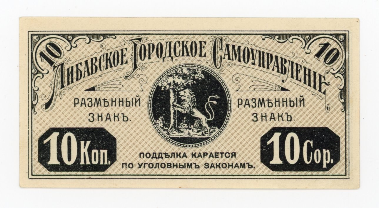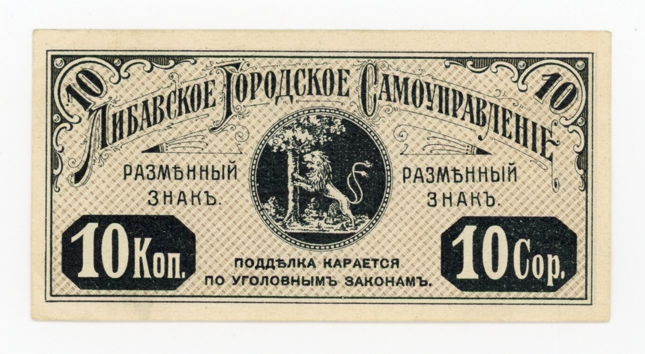 Łotwa, Libawa, 10 kopiejek 1915. Stan zachowania 2+. Jedno słabe pionowe złamanie.