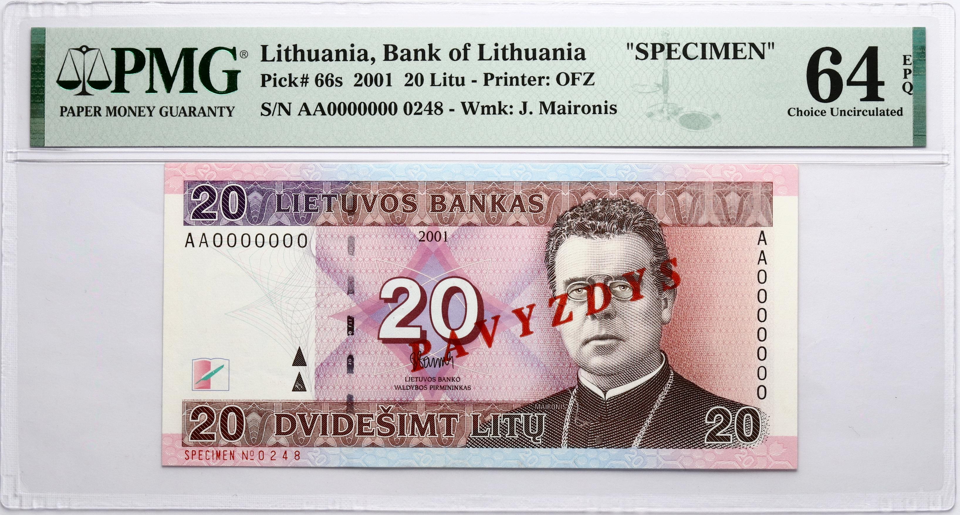 Lithuania 20 Litu 2001 SPECIMEN PMG 64 Choice Unc EPQ