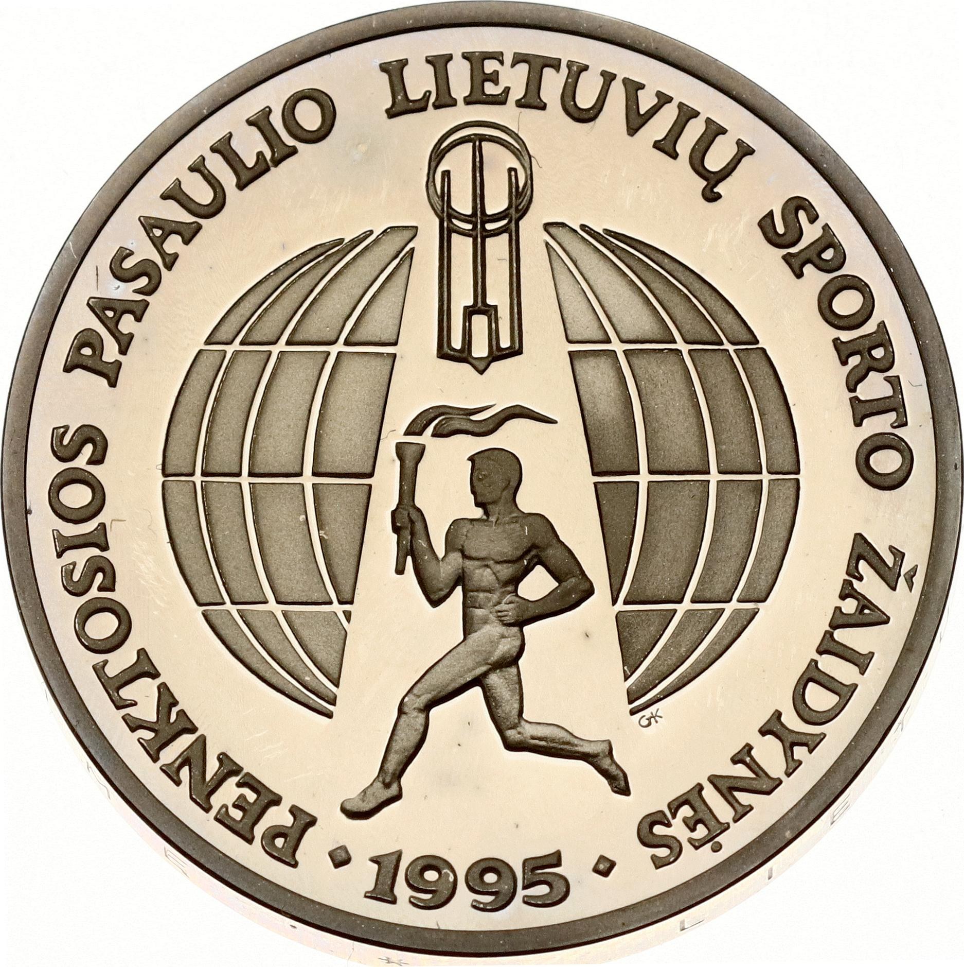 Lithuania. 10 Litu 1995 5th World Lithuanians Sport Games. Copper-nickel, 13.03 g. KM 97. In pack.
