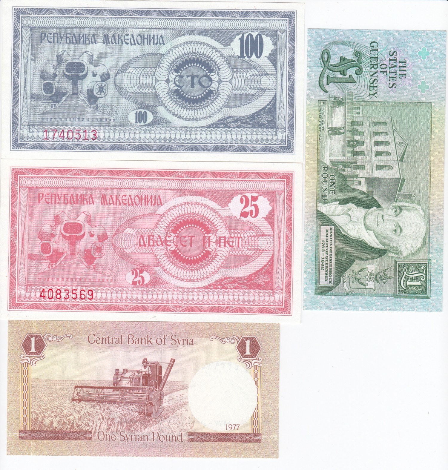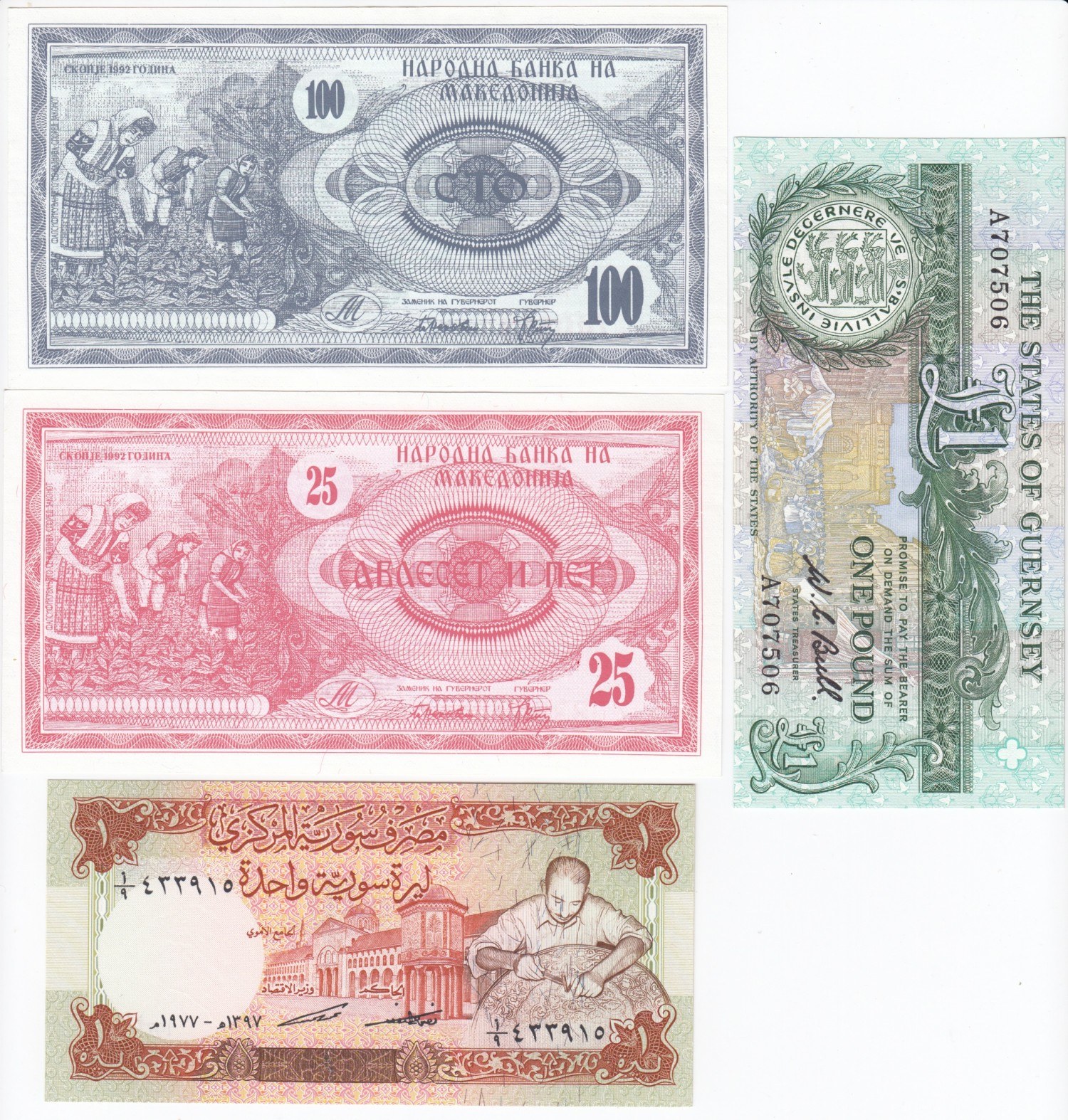 Group of Banknotes: Macedonia, Guernsey, Syria (4)