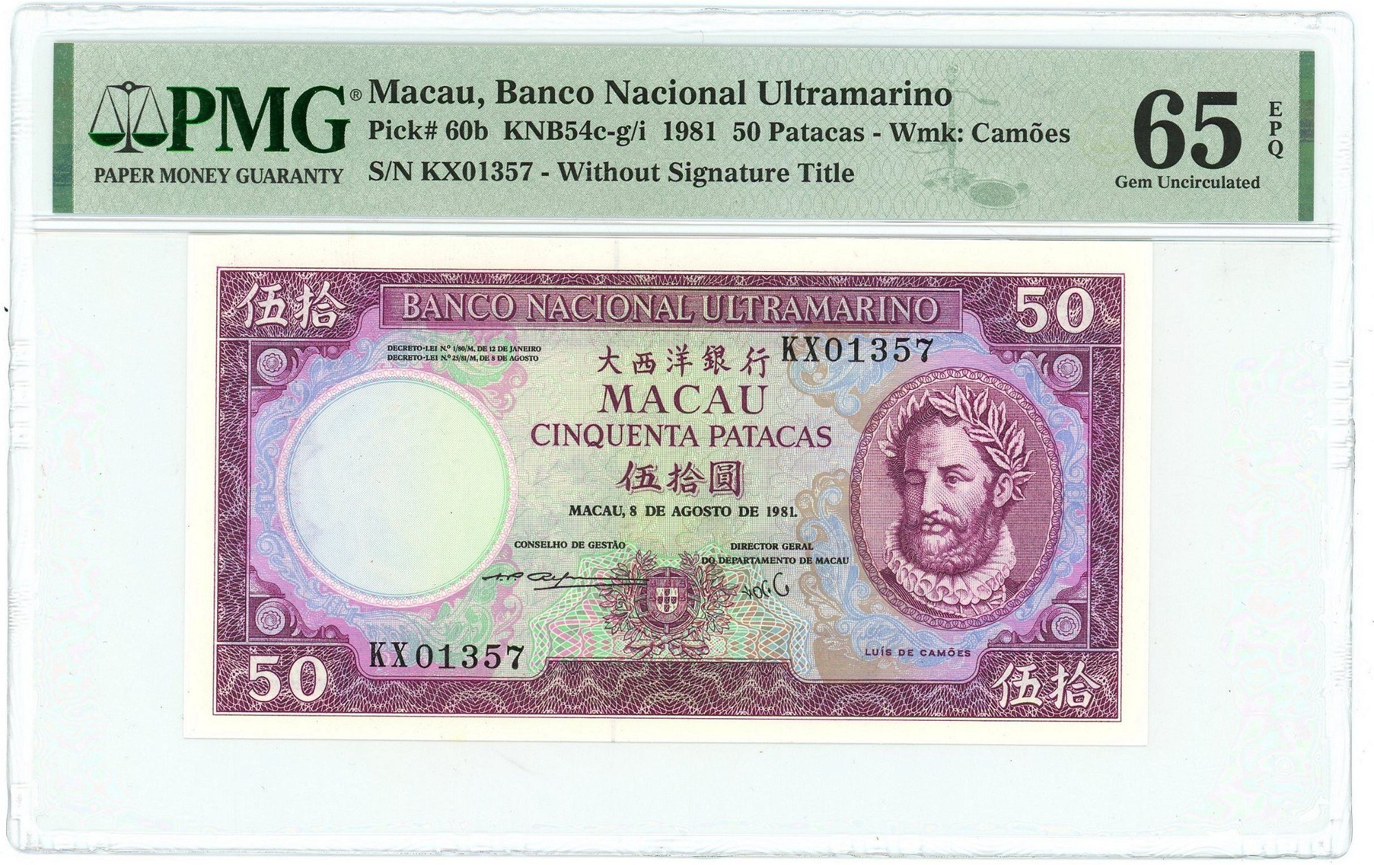 Macao 50 Patacas 1981 PMG 65 EPQ Gem UNC