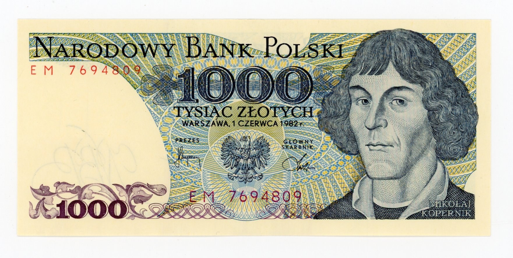 PRL, 1.000 złotych 1982 EM. Stan zachowania 1-/2+. Literatura: Miłczak 162