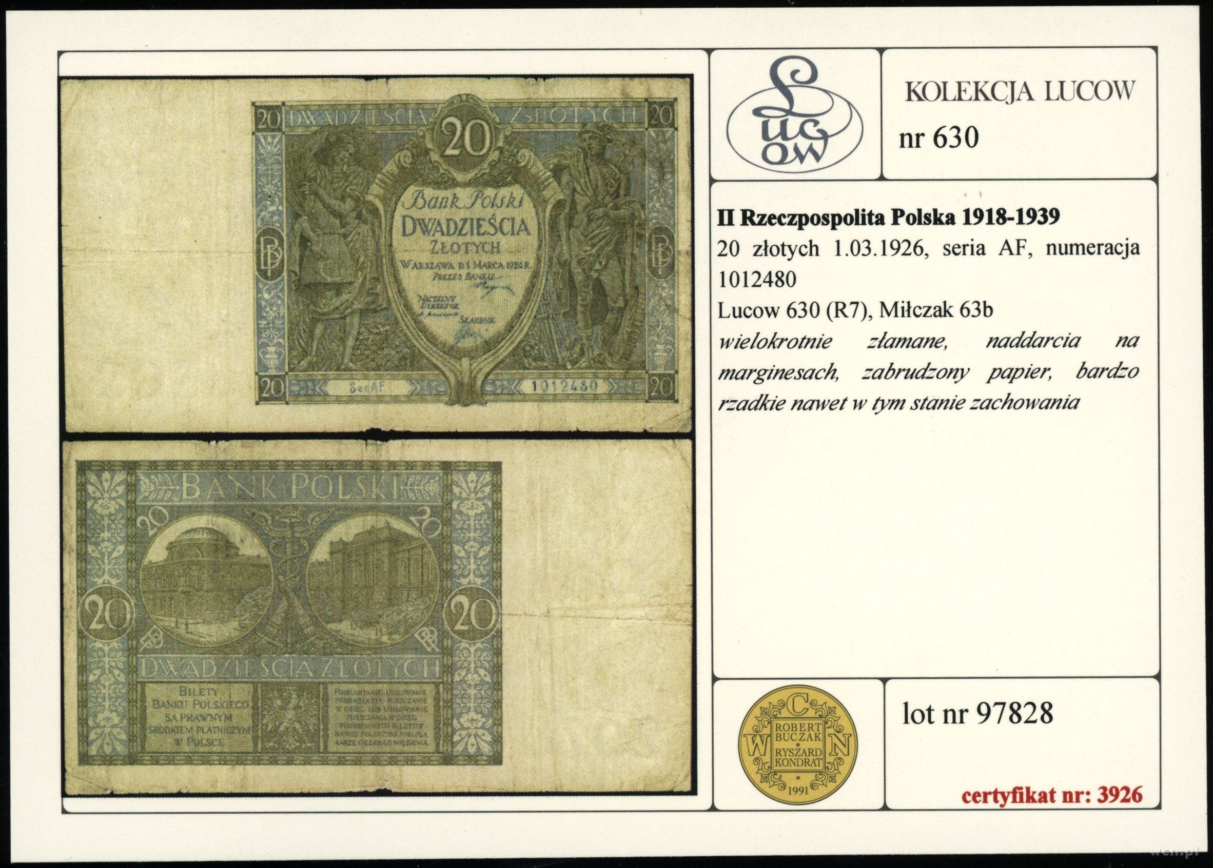 wielokrotnie złamane, naddarcia na marginesach, zabrudzony papier, bardzo rzadkie nawet w tym stanie zachowania, banknot z kolekcji Lucow